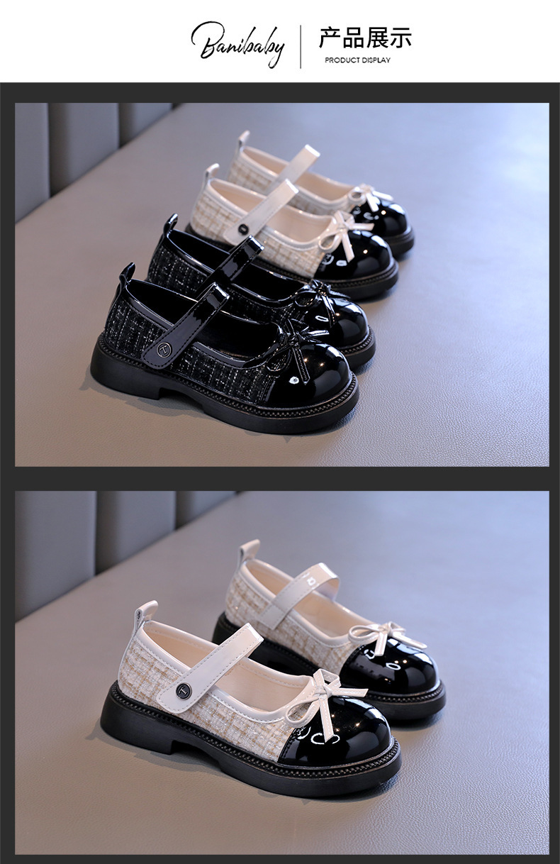 소녀 가죽 신발 2024 봄 새로운 공주 활 샤넬 스타일 싱글 레이어 신발 학생 블랙 성능 로우 컷 싱글 레이어 신발