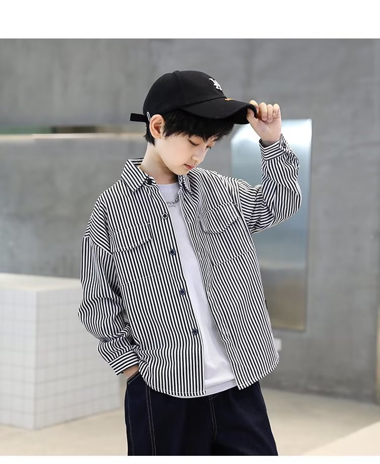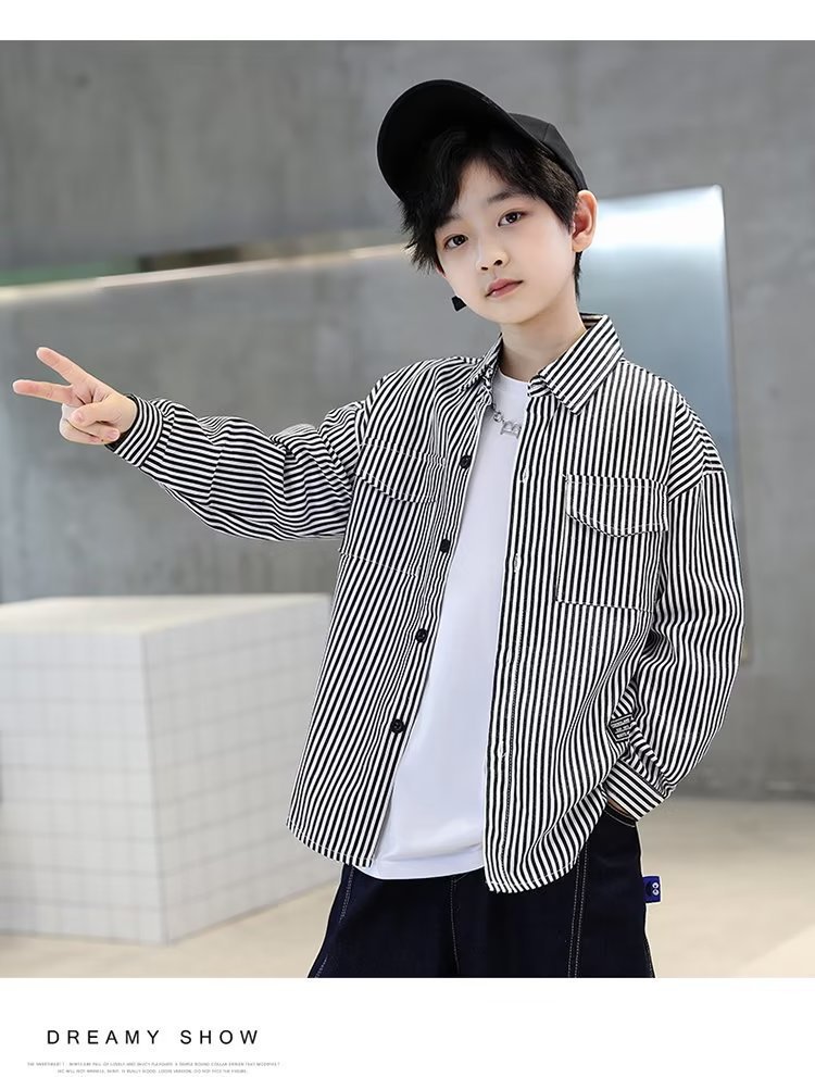 어린이 의류 소년 긴팔 셔츠 2024 여름 어린이 얇은 옷깃 셔츠 홍콩 스타일 태양 보호 셔츠 중 큰 어린이 학생스토어 가기