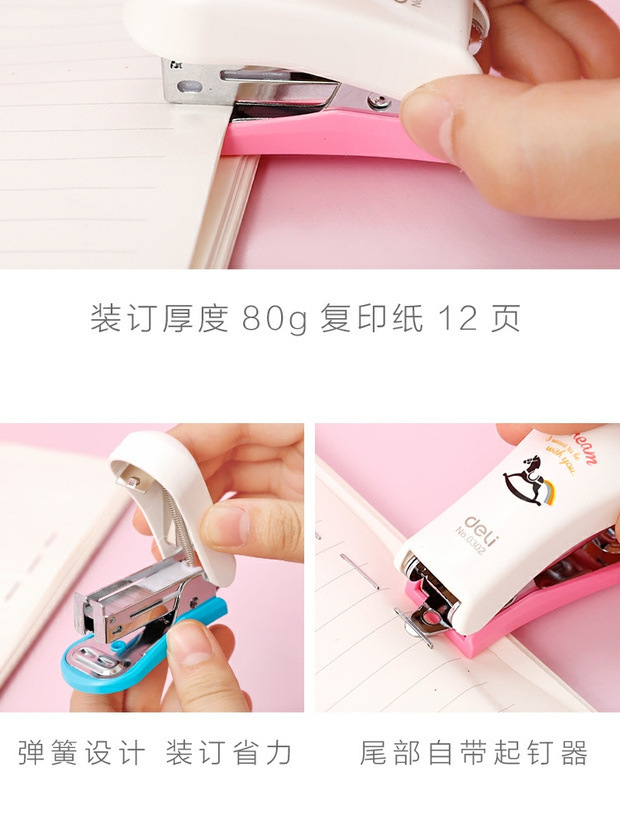 델리 문구 0302 미니 만화 스테이플러 학생 작은 스테이플러 바인딩 기계 12 호 스테이플러 책 바인딩 기계