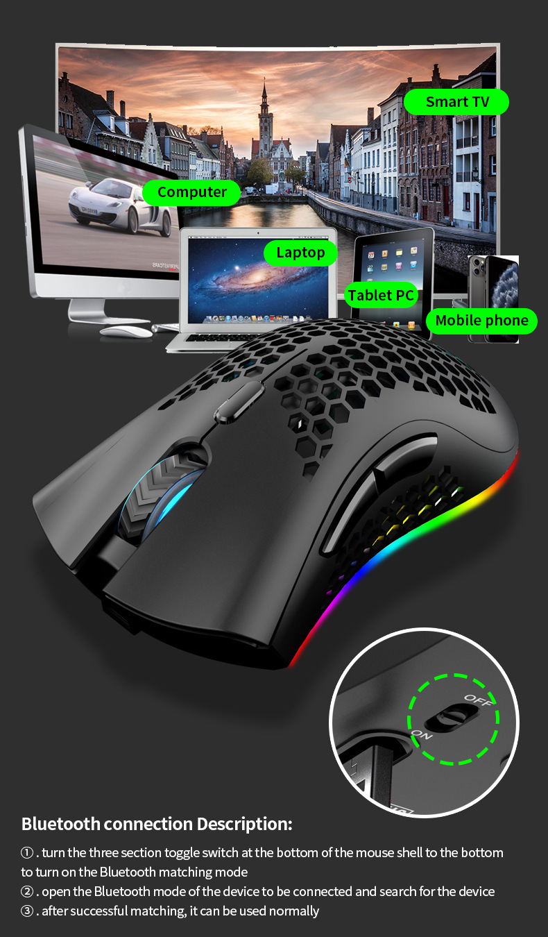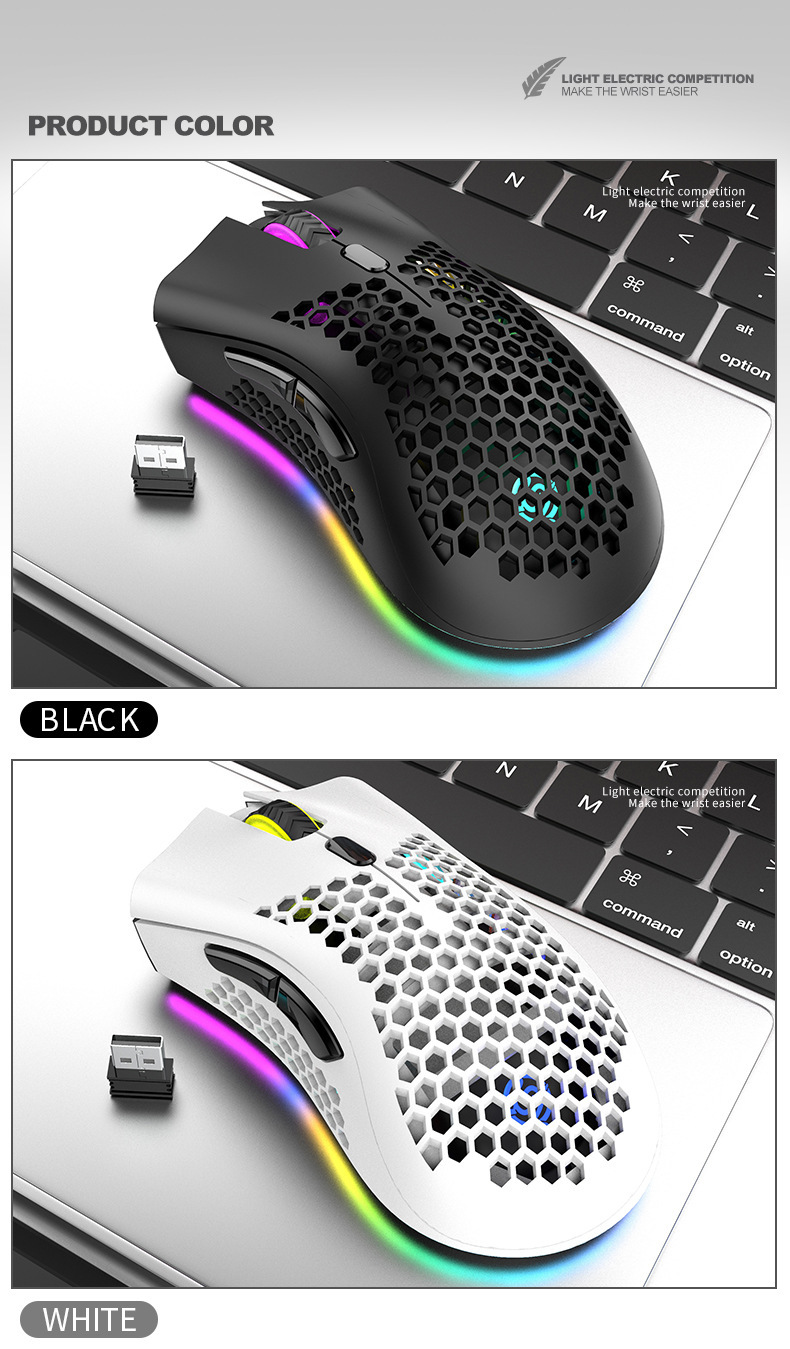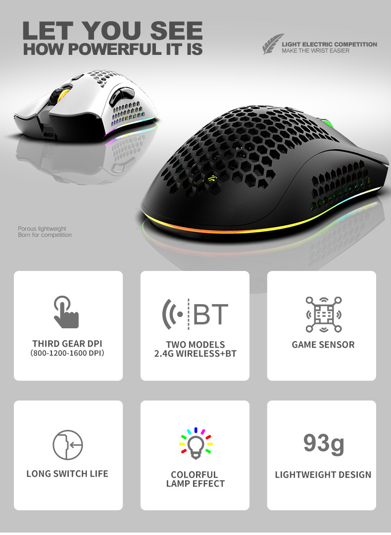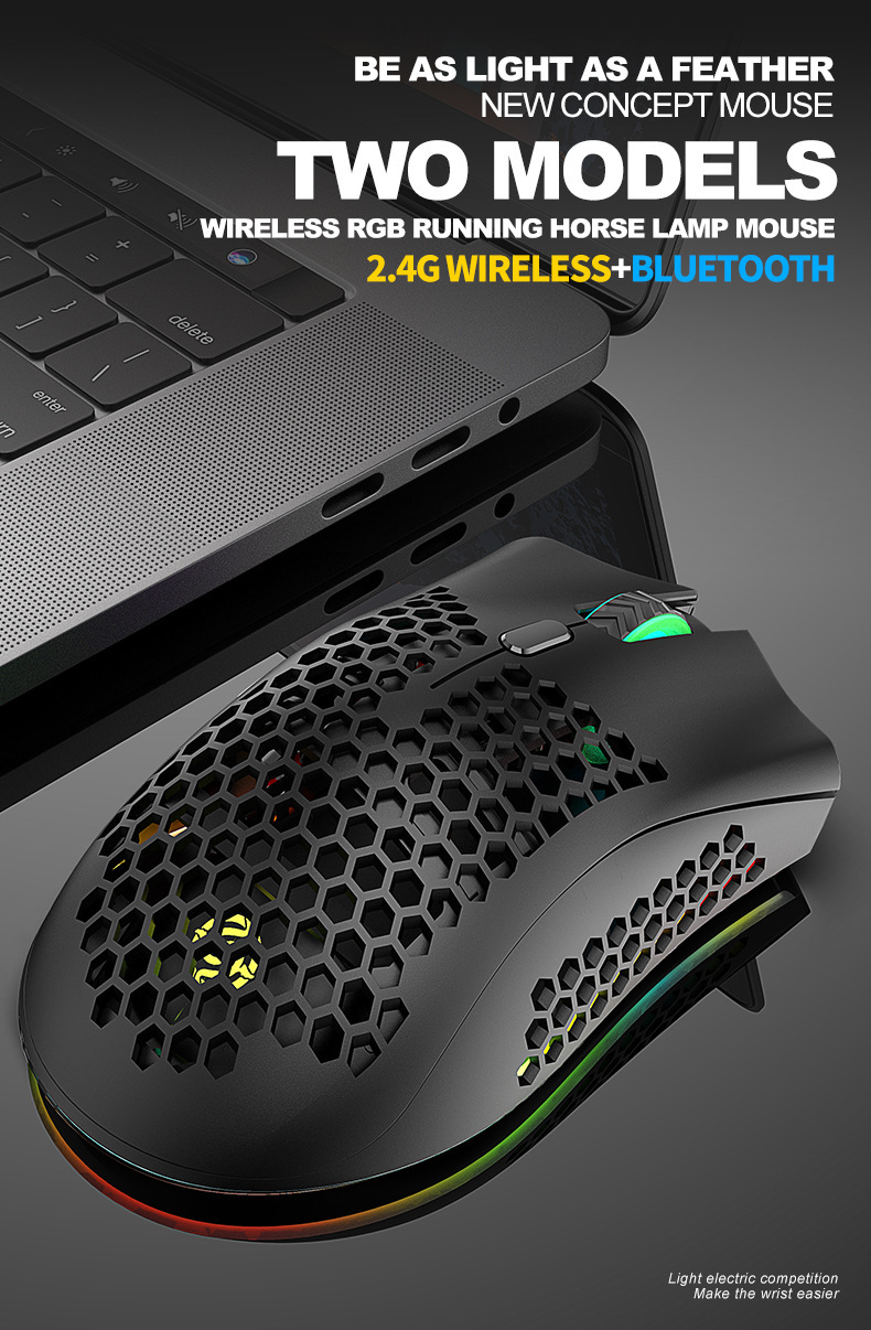 바이퍼 BM600 무선 블루투스 듀얼 모드 경량 중공 구멍 RGB 충전 게임 마우스 아마존 이베이
