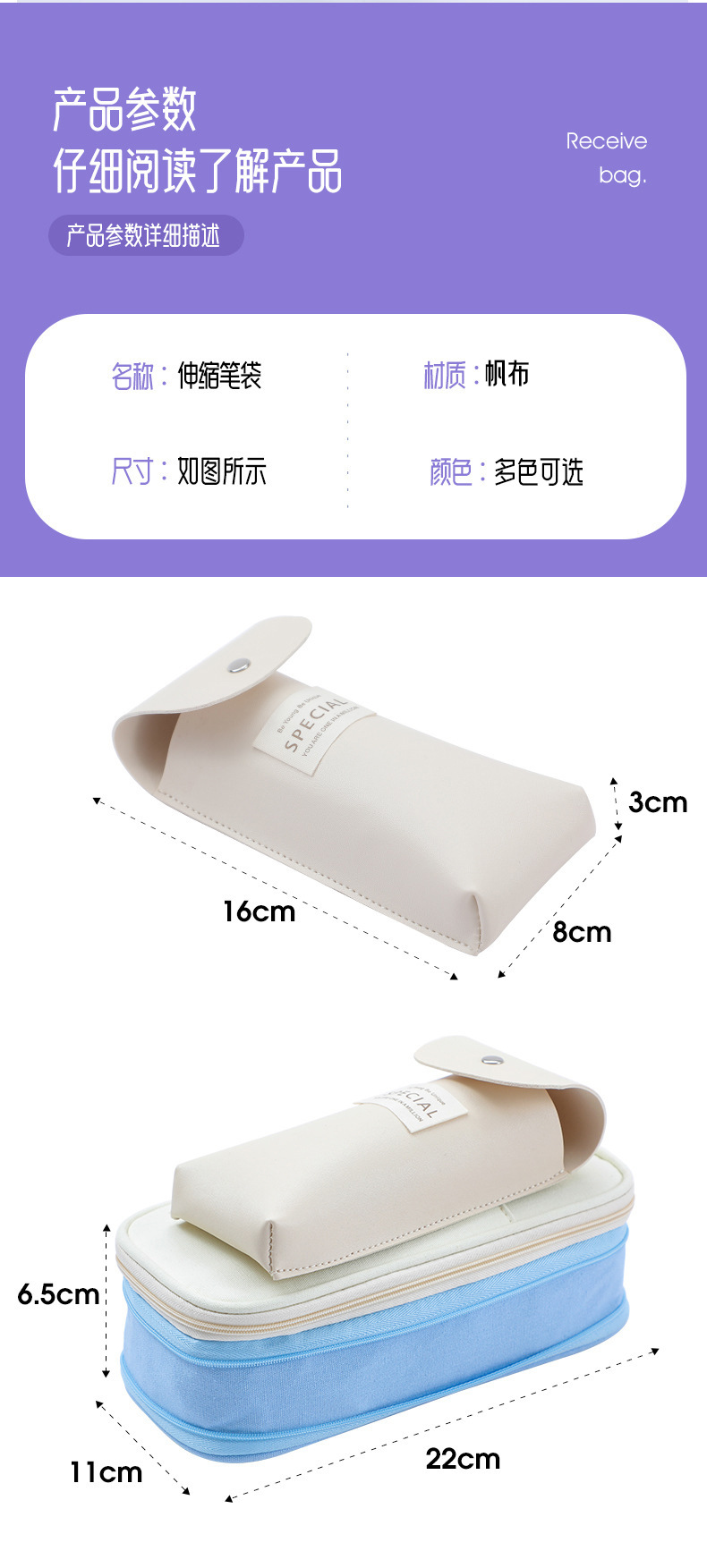 아마존 폭발 마카롱 캔버스 문구 가방 간단한 색상 일치 학생 더블 지퍼 다기능 확장 가능한 연필 가방스토어 가기