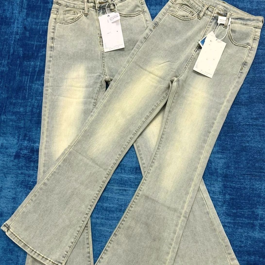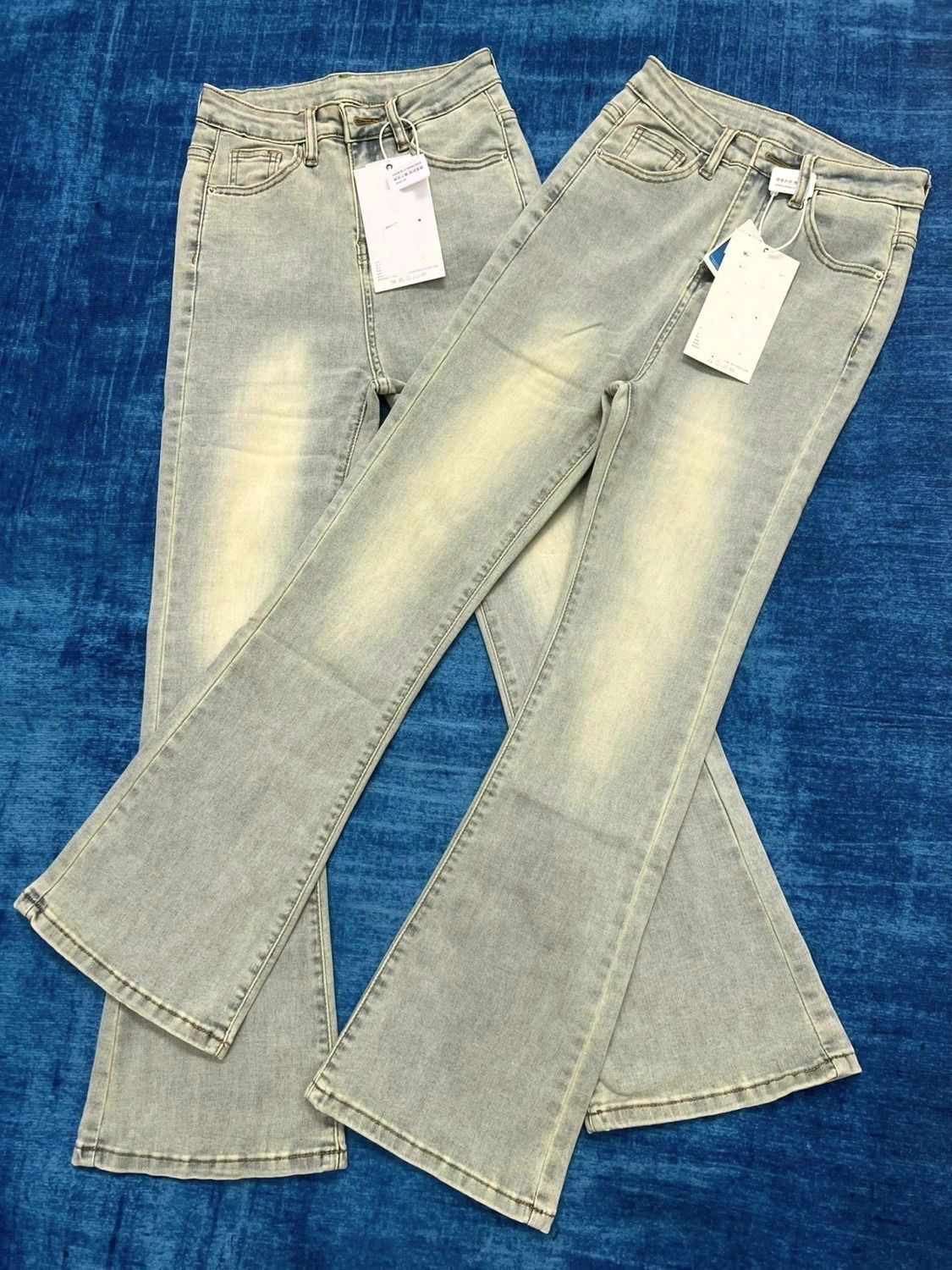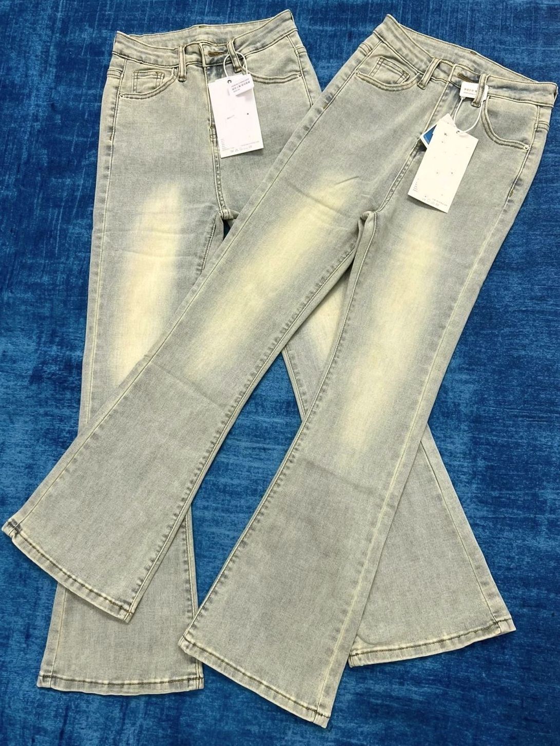 레트로 세척 높은 허리 슬리밍 청바지 여성의 봄 디자인 센스 틈새 대형 마이크로 혼 걸레 바지스토어 가기