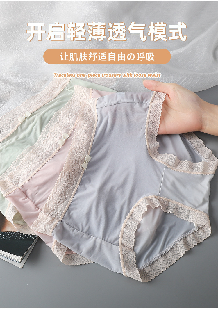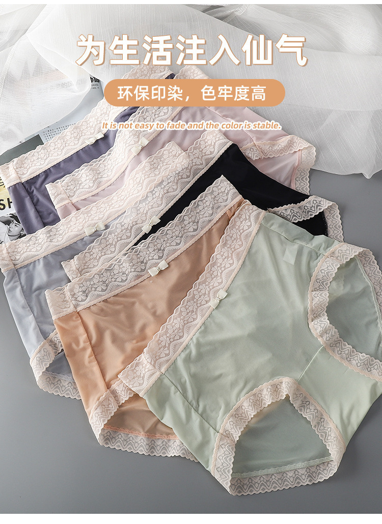 아이스 실크 속옷 여성용 미드 하이 허리 쿤 내부 초박형 쿨 아이스 실크 느낌 항균 삼각형 반바지 패션 핫스토어 가기