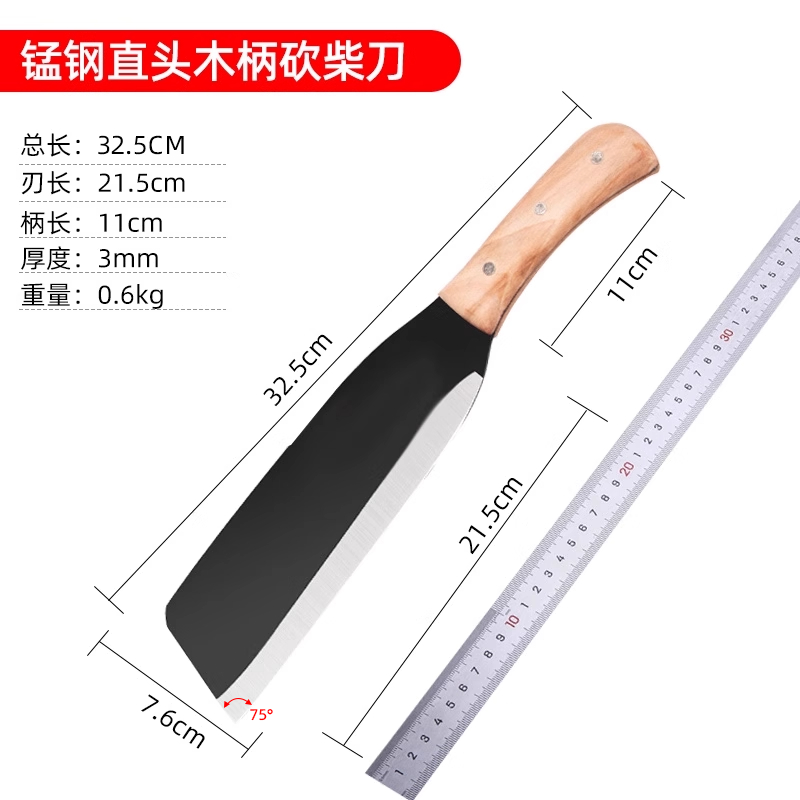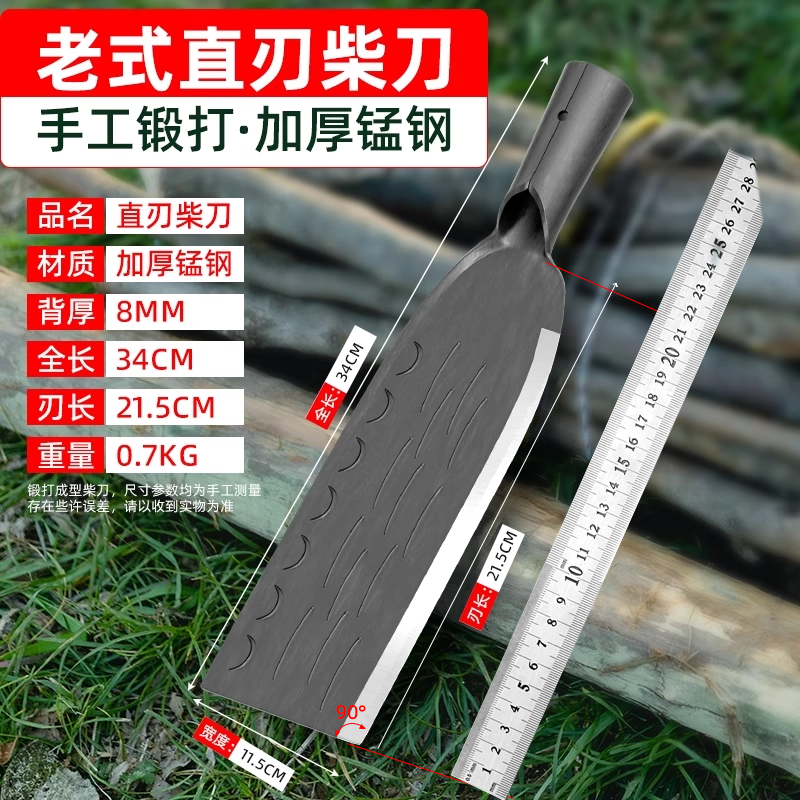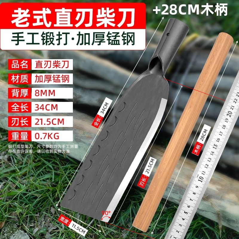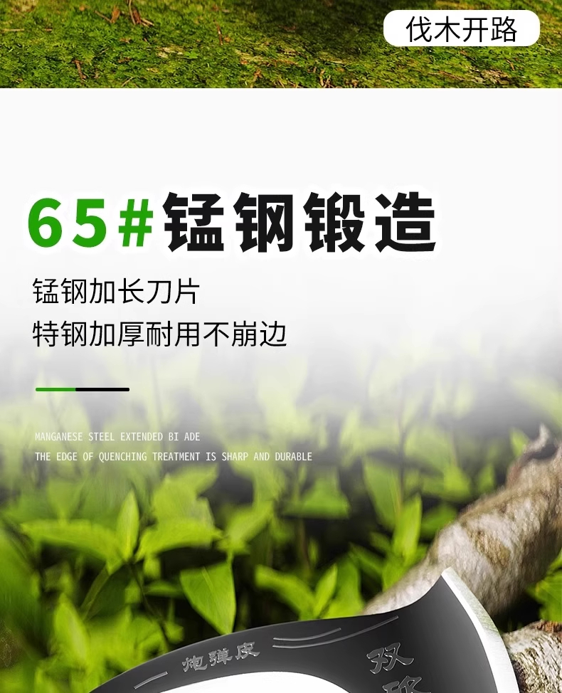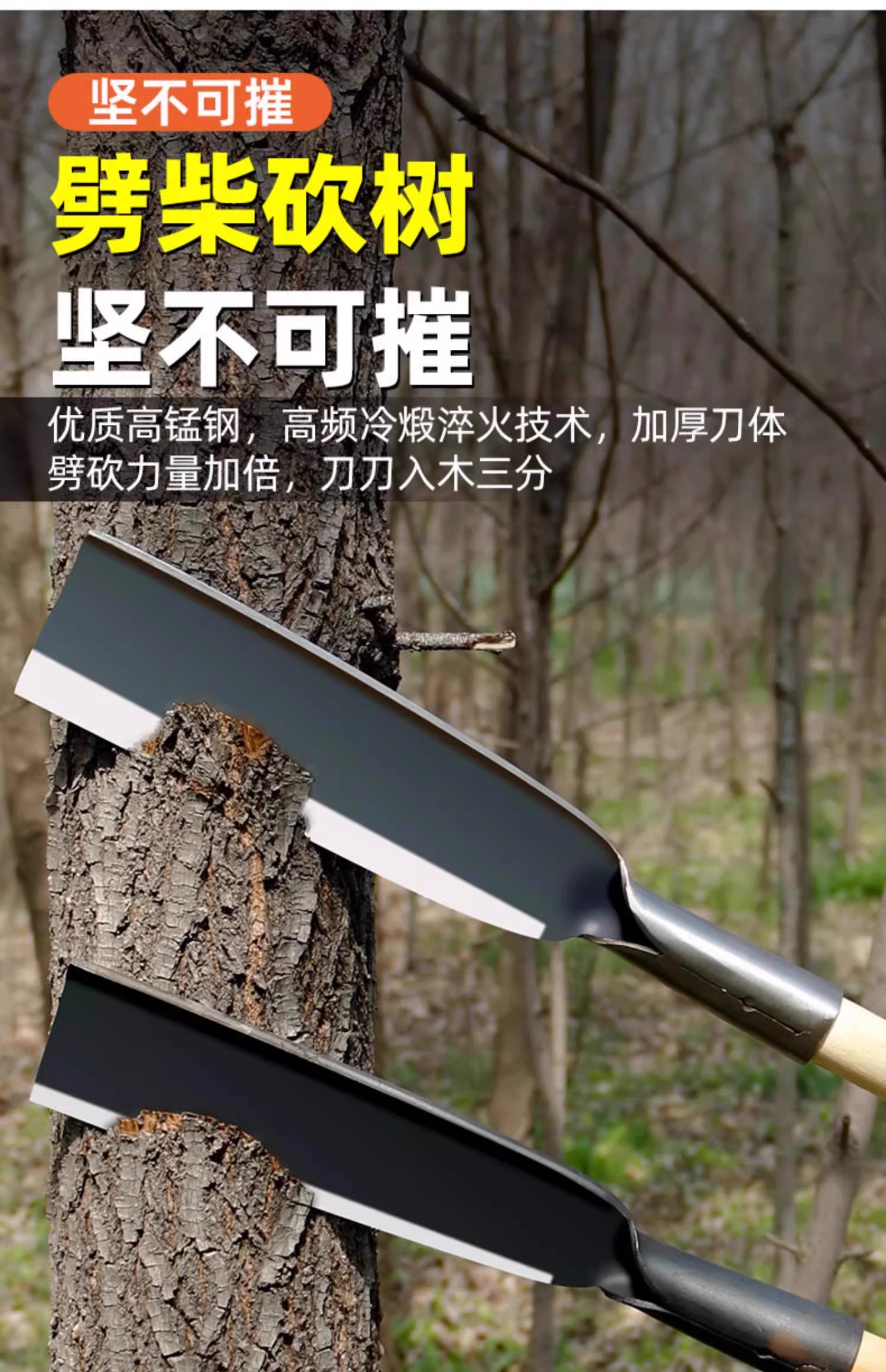 • 0.7kg 두꺼운 고망간강·직선 칼날 도끼+원목 손잡이-60°위 -20cm