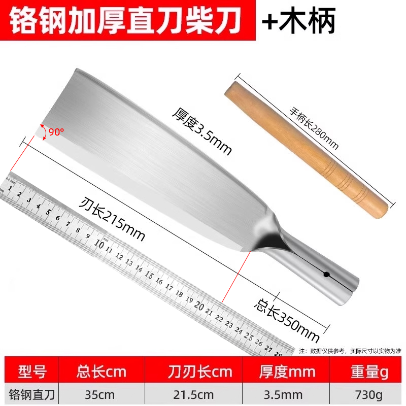 • 0.65kg 두꺼운 크롬강직날장도+원목손잡이-60°위 -20cm