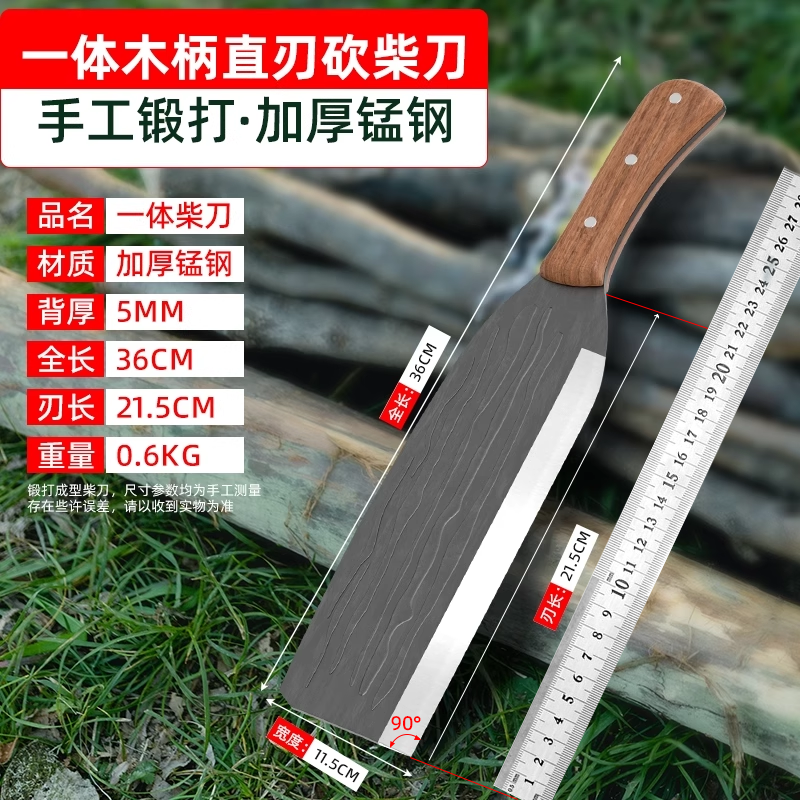 • 0.6kg 구식 단조 목제 손잡이 일체형 직선 칼날 도끼(두꺼운 고망간강)-60°위 -20cm