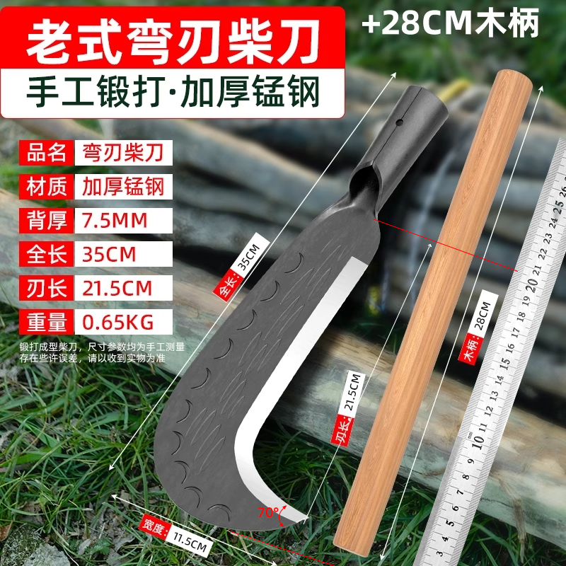 • 두꺼운 망간강 이중 절단 왕 낫 + 녹색 나무 손잡이 -60°위 -20cm