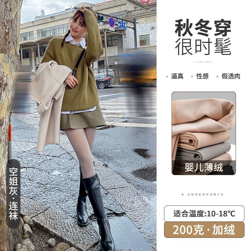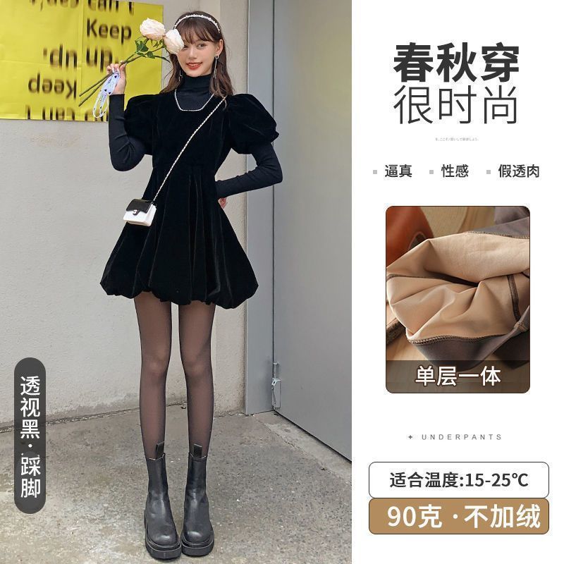 가짜 투명 레깅스 여성용 블랙 실크 진짜 투명한 봄과 가을 겨울 기모 두껍게 한 원피스 가벼운 다리 아티팩트 살색 겉옷스토어 가기