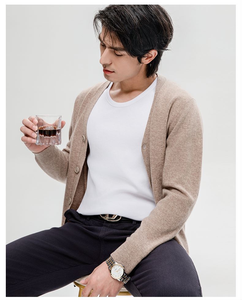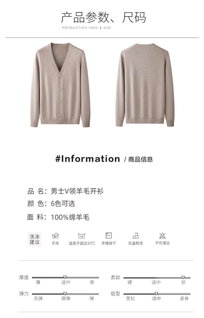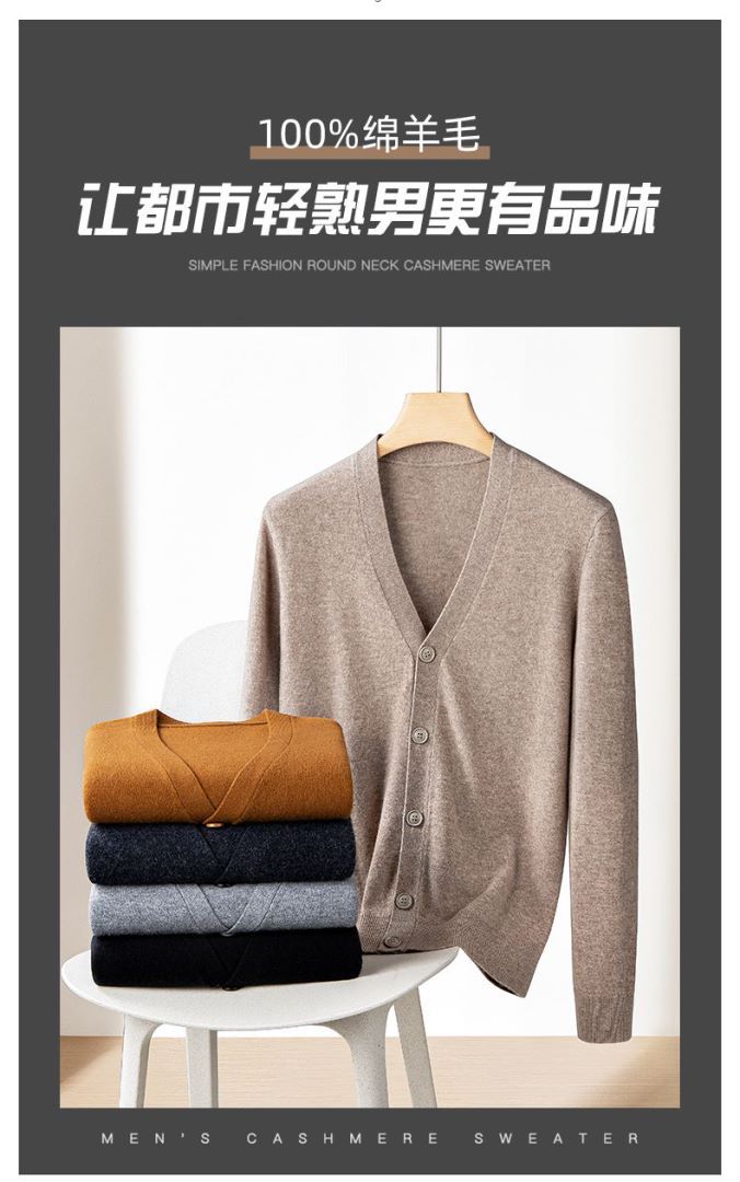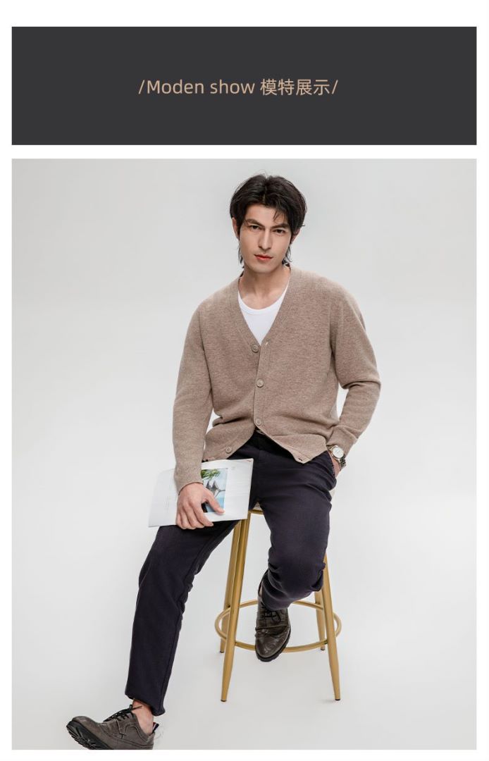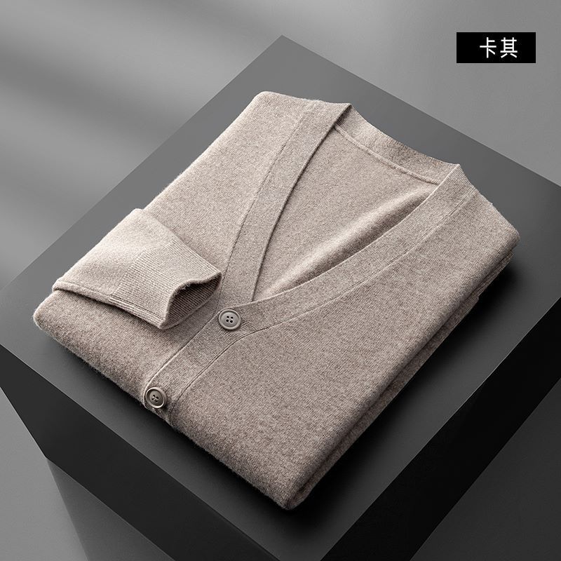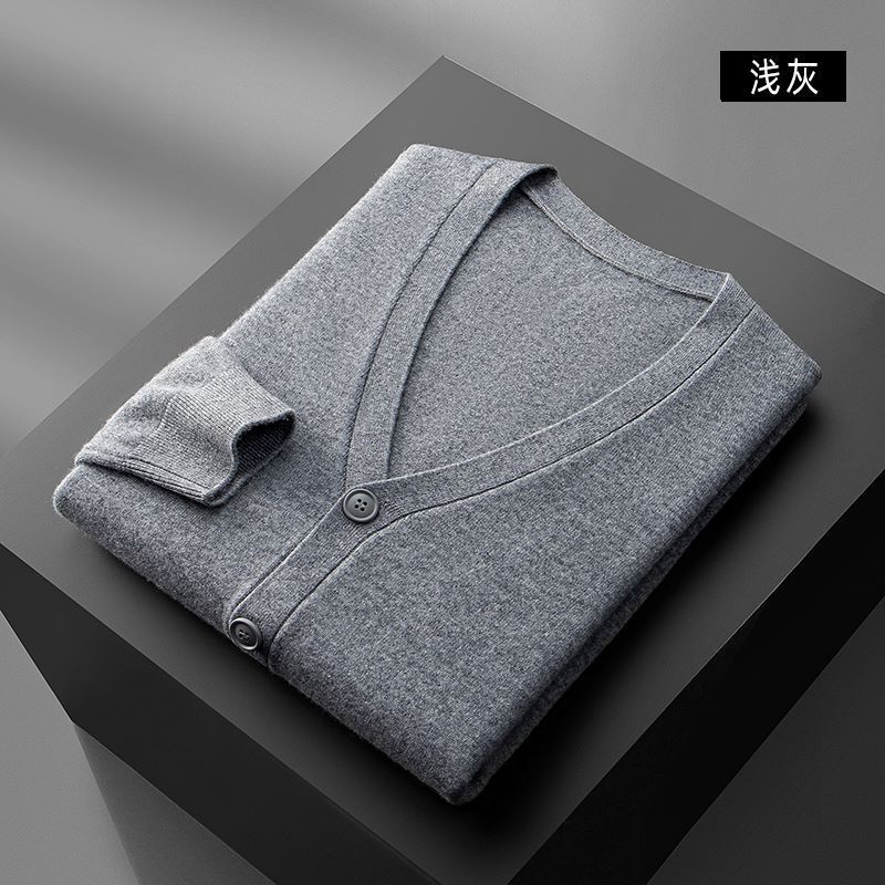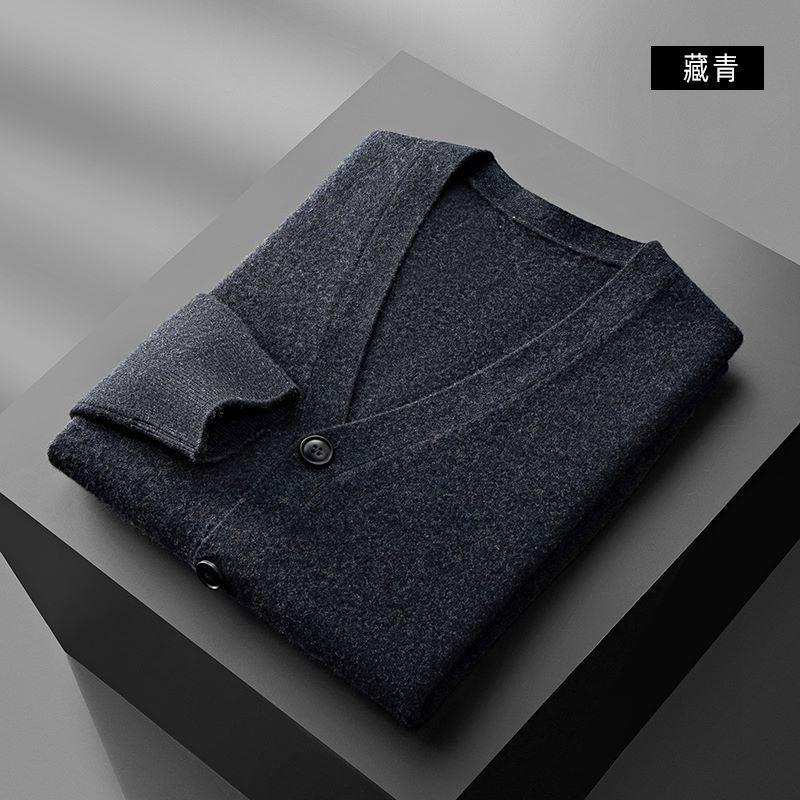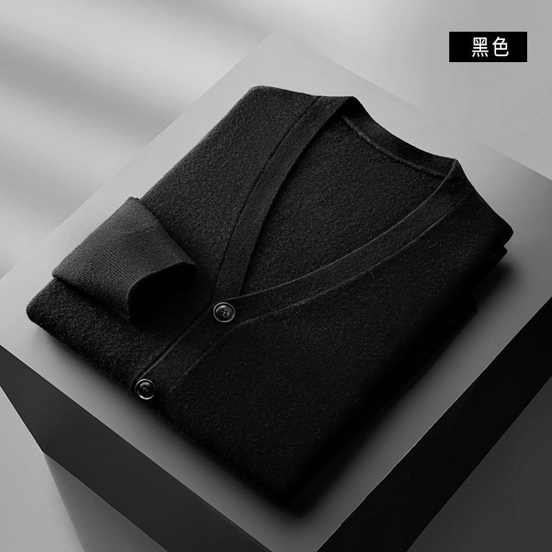 봄과 가을 빨 수있는 남성용 V-넥 코튼 울 니트 카디건 단색 캐주얼 겉옷 스웨터 코트스토어 가기