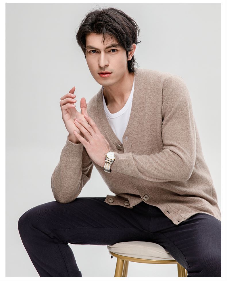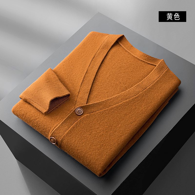 봄과 가을 빨 수있는 남성용 V-넥 코튼 울 니트 카디건 단색 캐주얼 겉옷 스웨터 코트