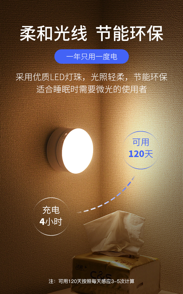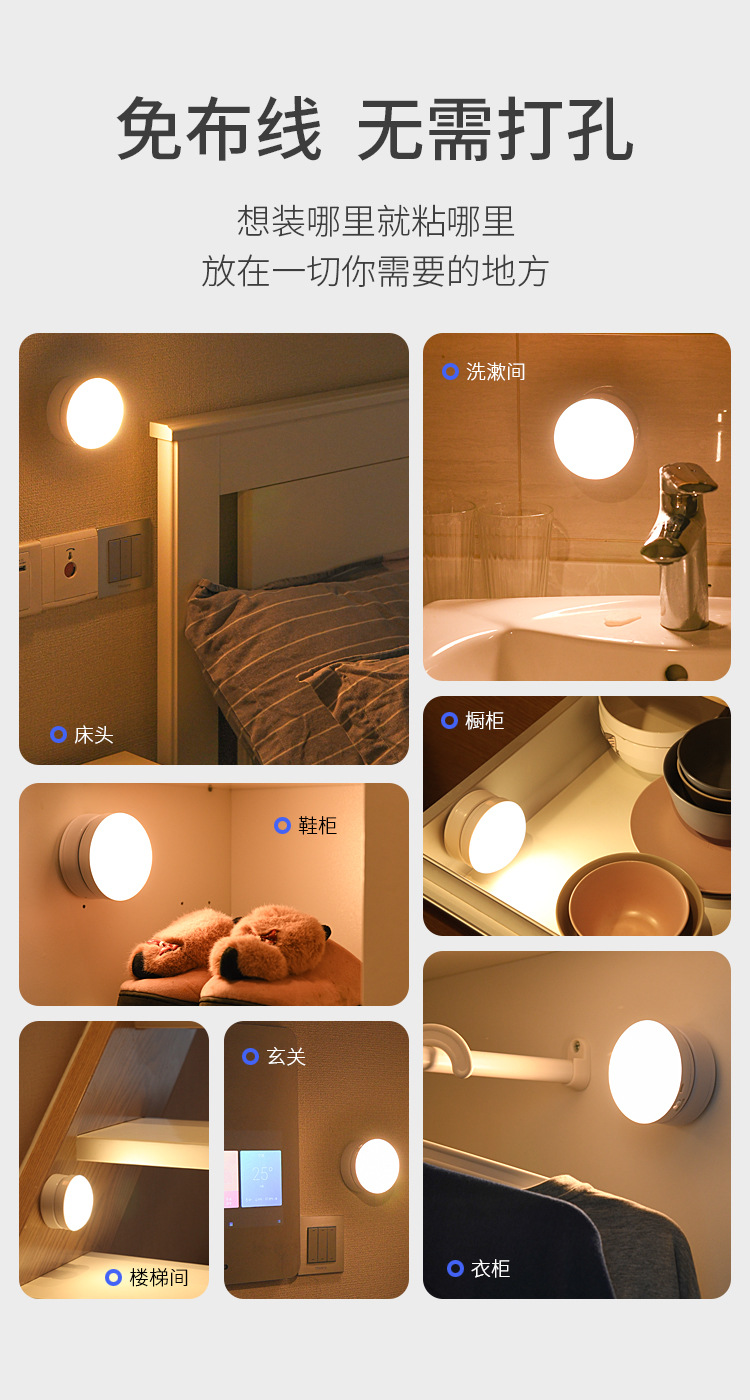 새로운 회전 인체 유도 램프 침실 침대 옆 벽 램프 계단 복도 거실 옷장 램프 충전식 배터리 야간 조명
