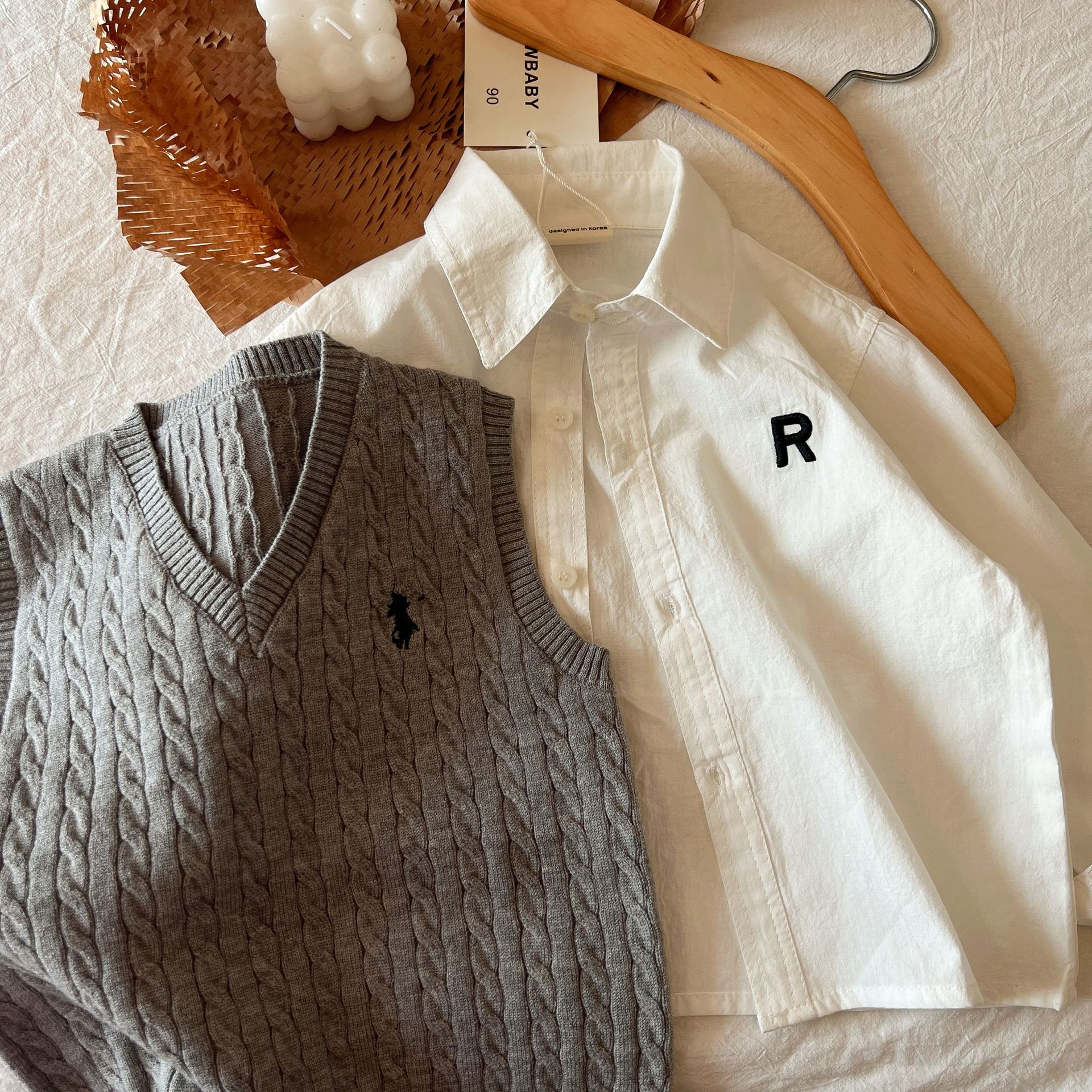 아동용 스웨터 2024 봄, 가을 새로운 아기 모직 조끼 소년과 소녀 모직 조끼 서양식 양복 조끼스토어 가기