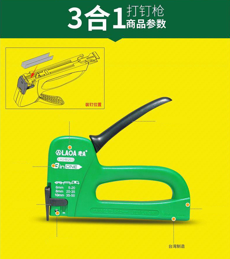 LAOA 5-in-1 강력한 네일 건 코드 네일 건 스테이플러 LA148105