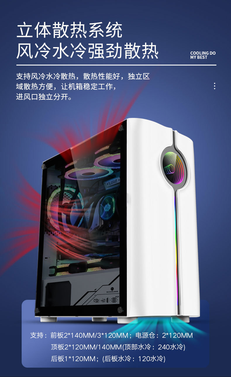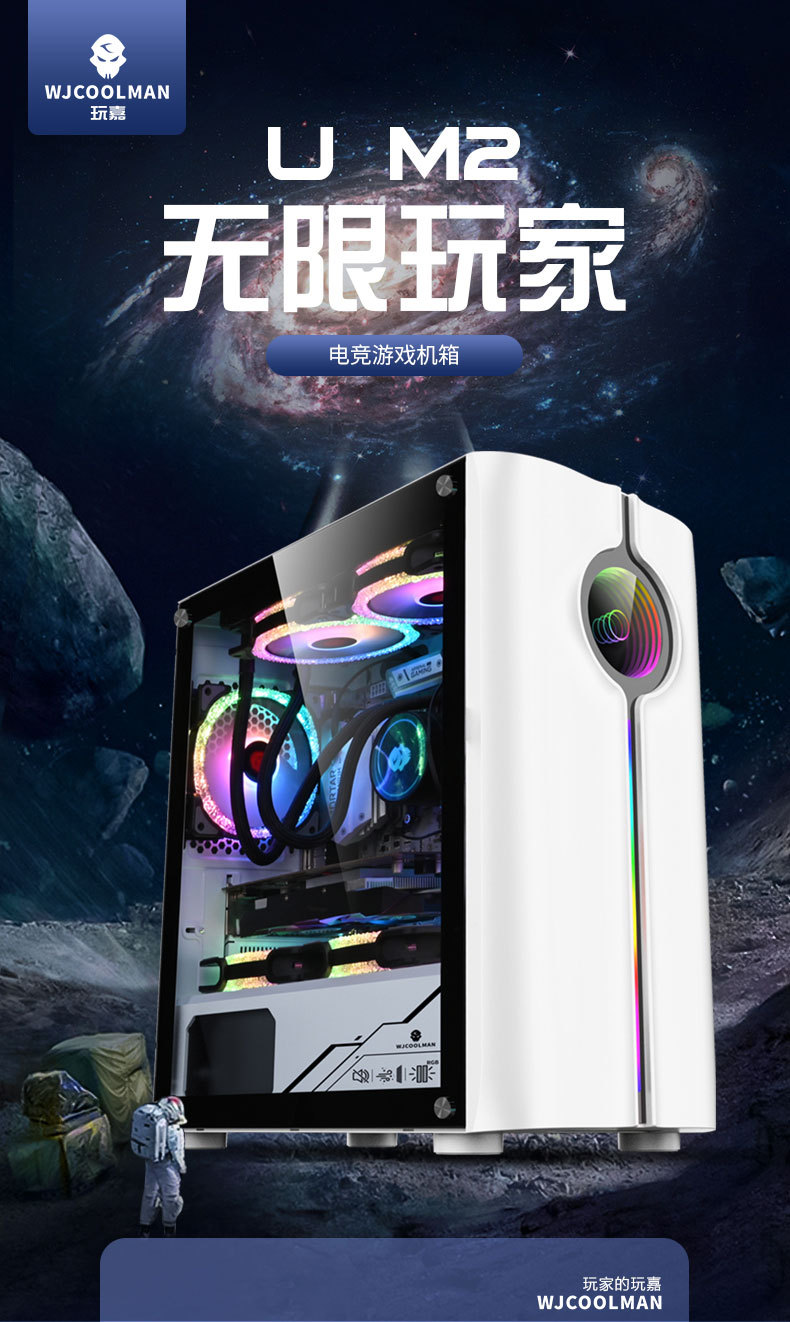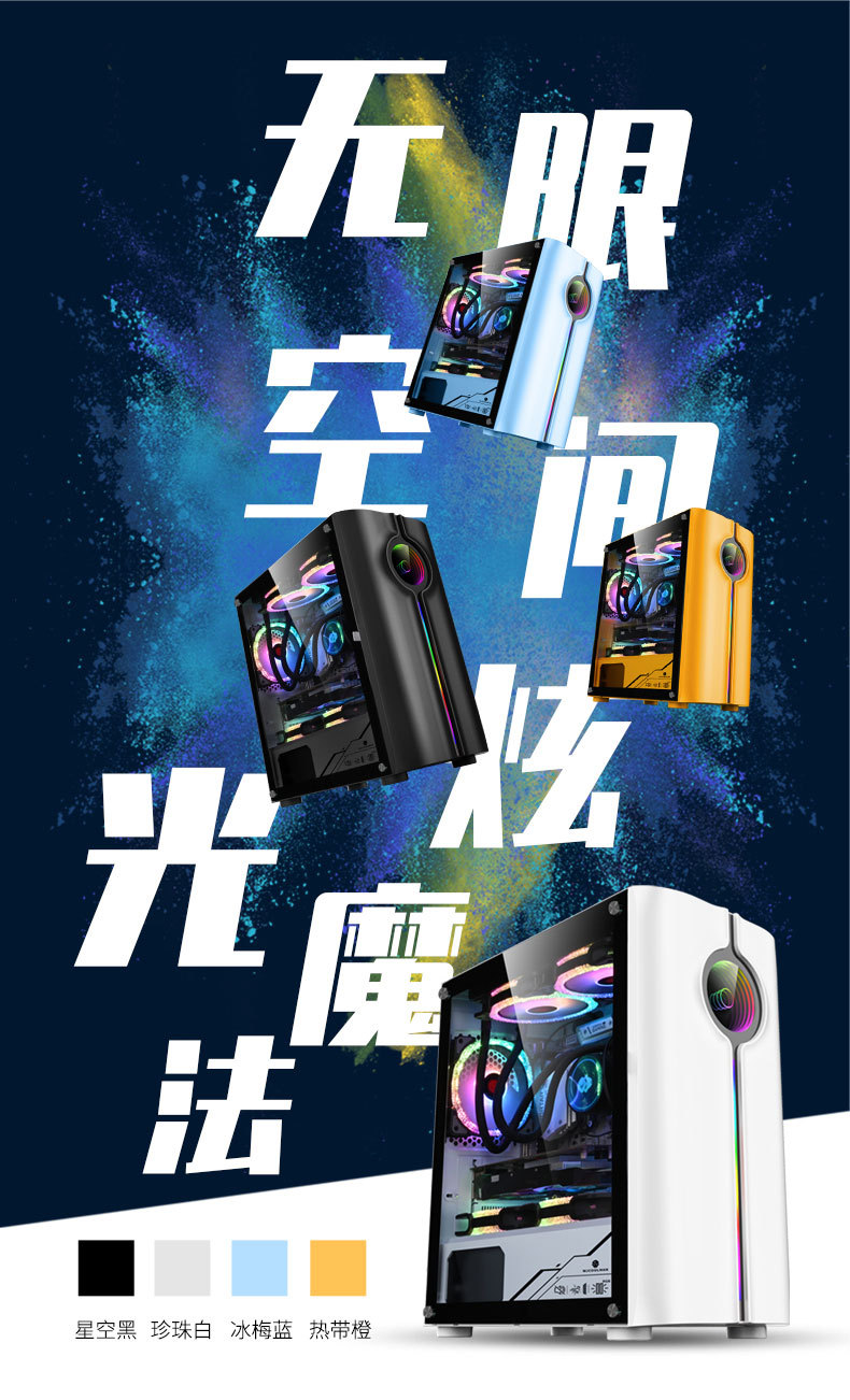 无限玩家全景钢化玻璃侧透计算机机箱M-ATX大空间电竞游戏机箱