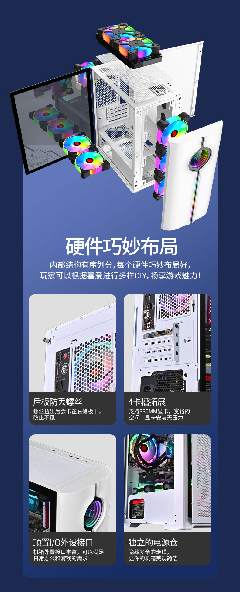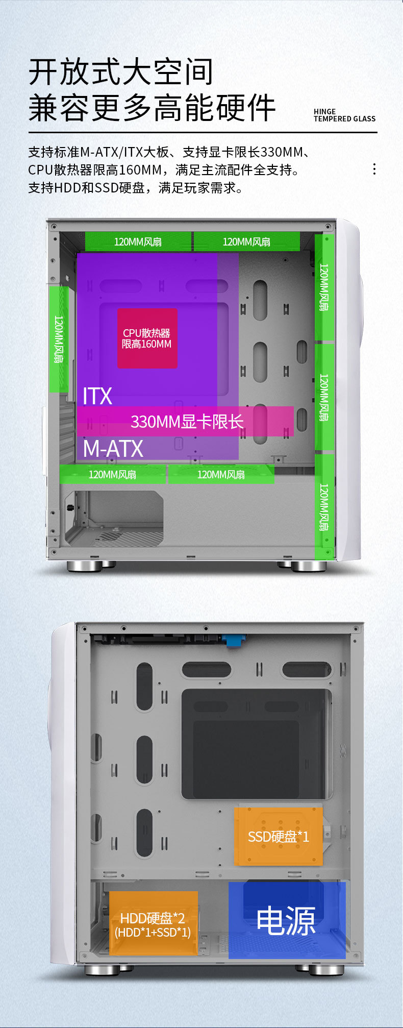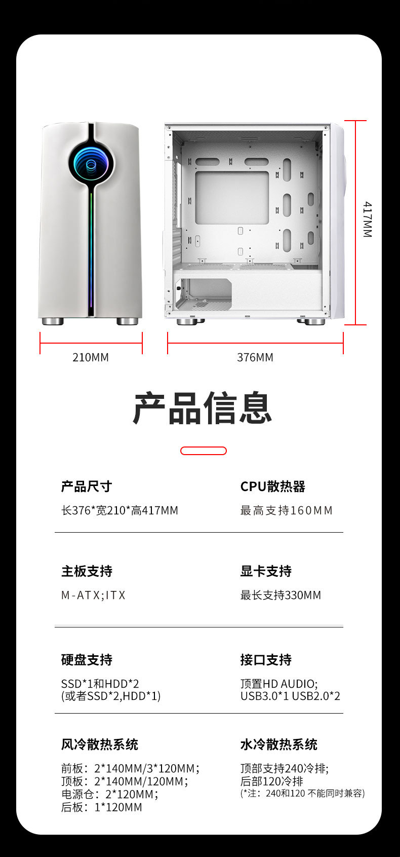 无限玩家全景钢化玻璃侧透计算机机箱M-ATX大空间电竞游戏机箱