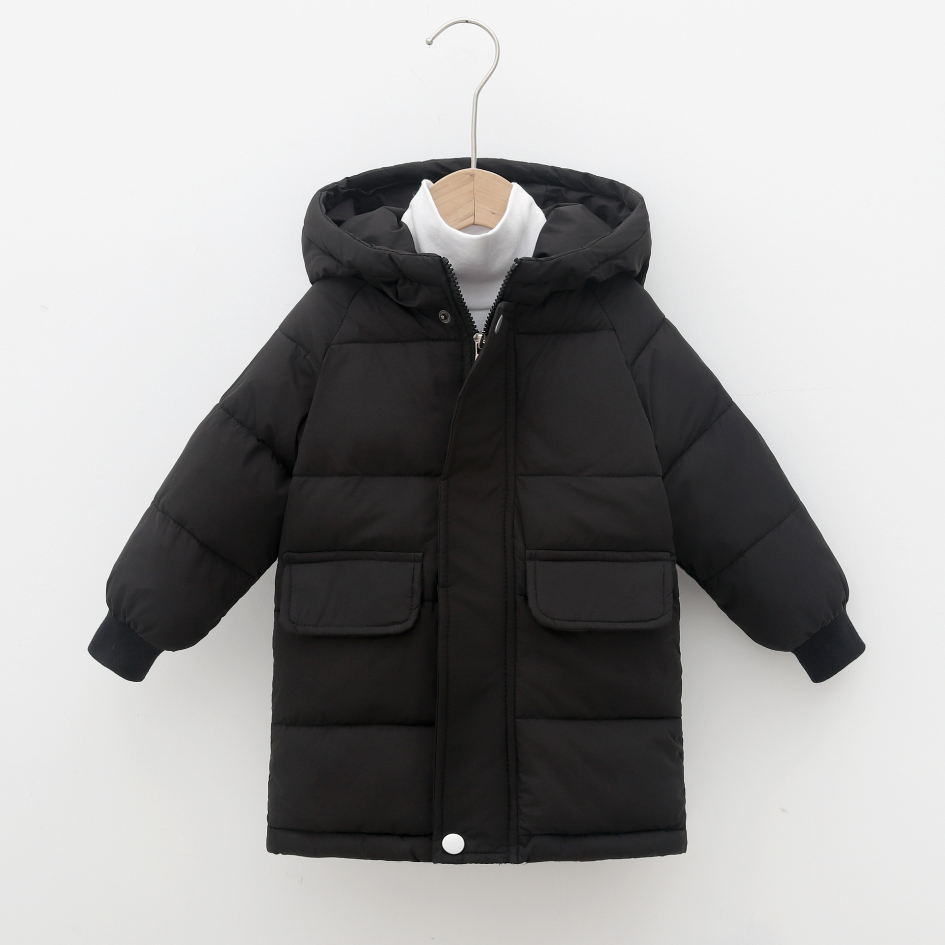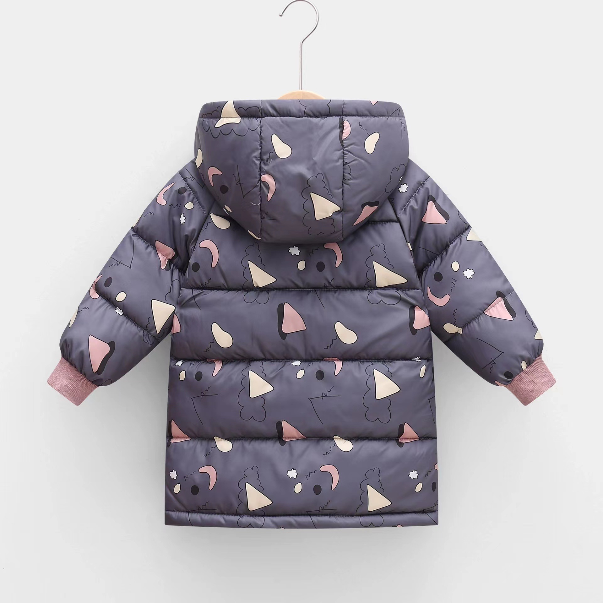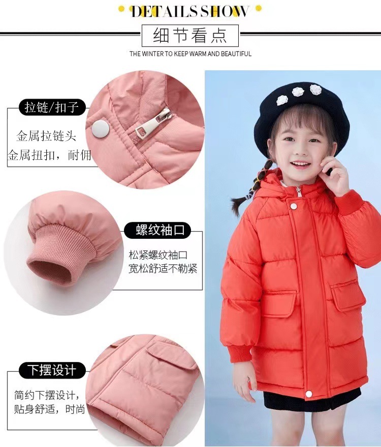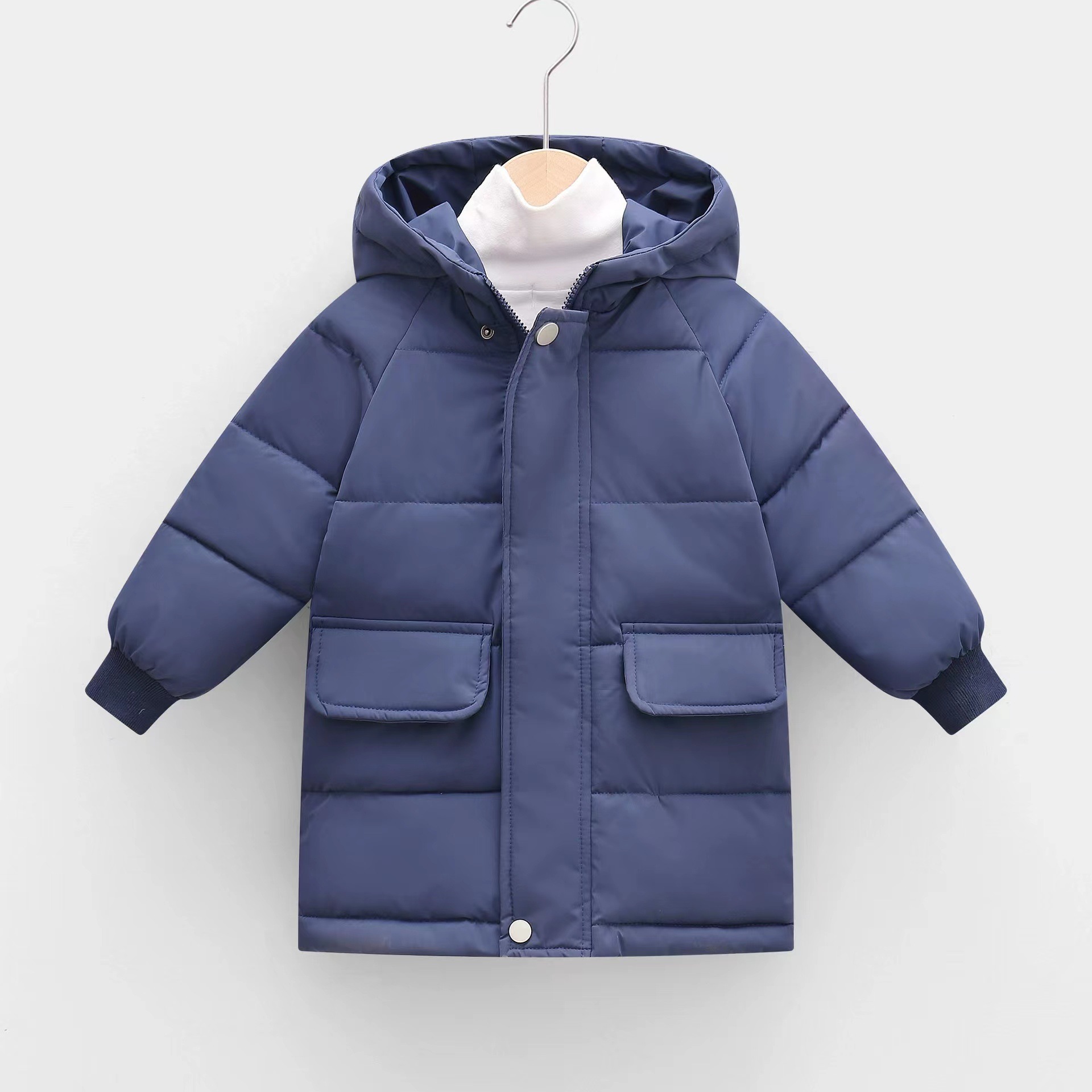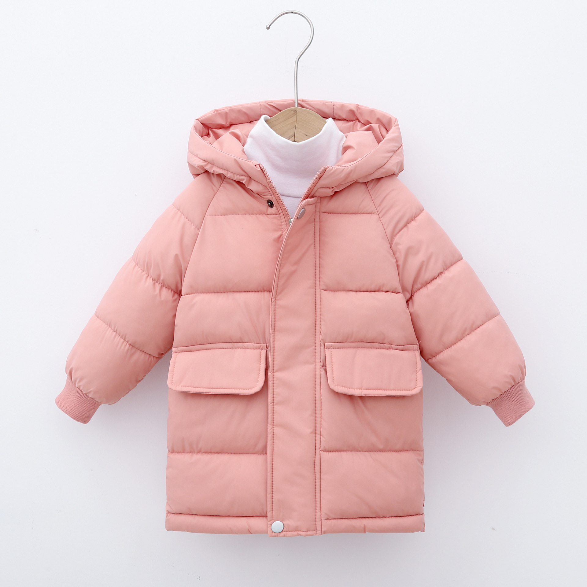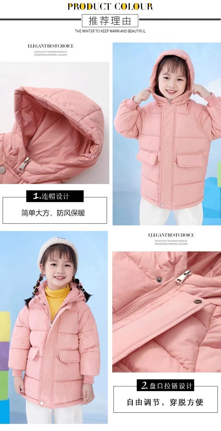 비수기 신작 2025 남아 및 여아용 아동용 중간 길이 면 재킷, 중소형 아동용 두꺼운 후드 면 재킷