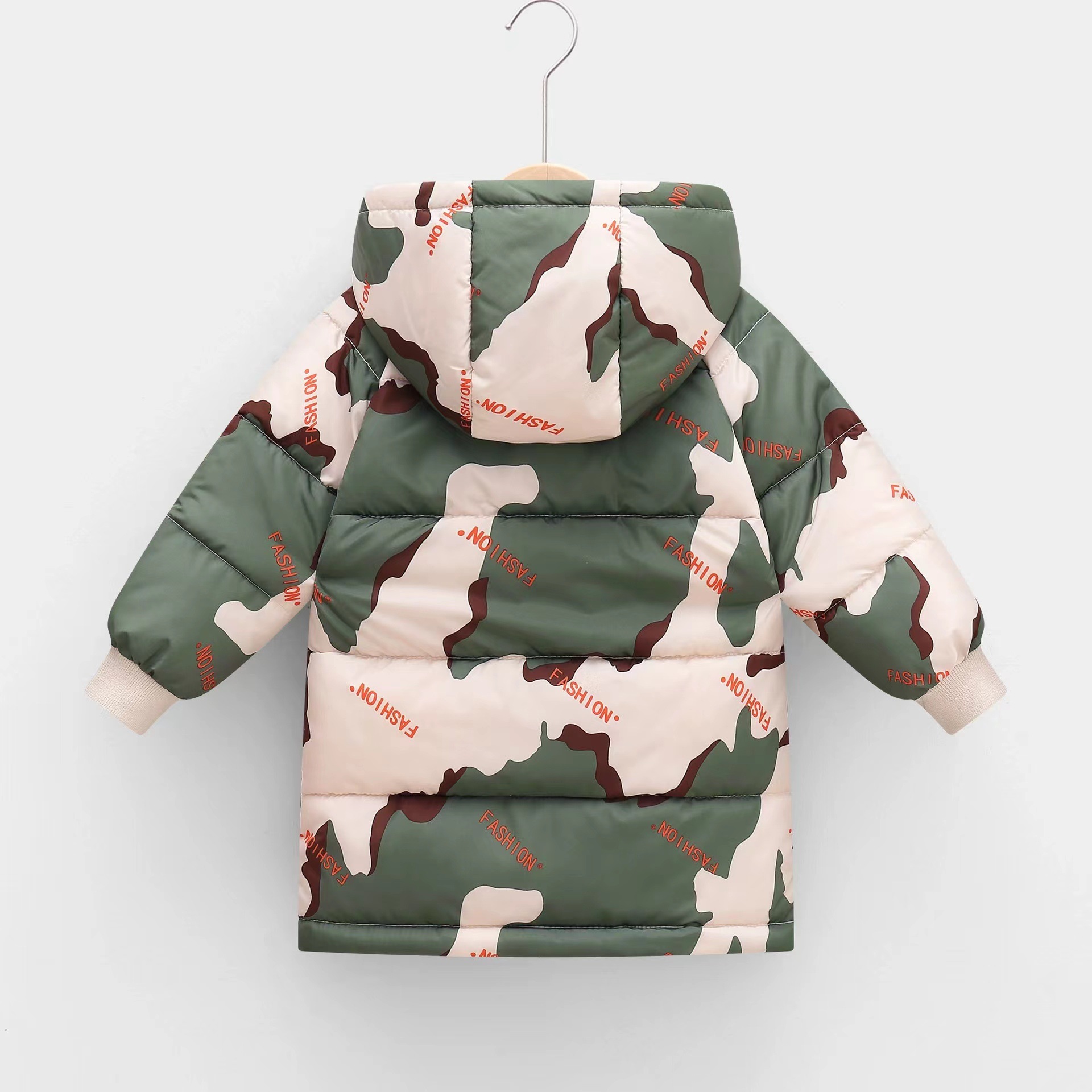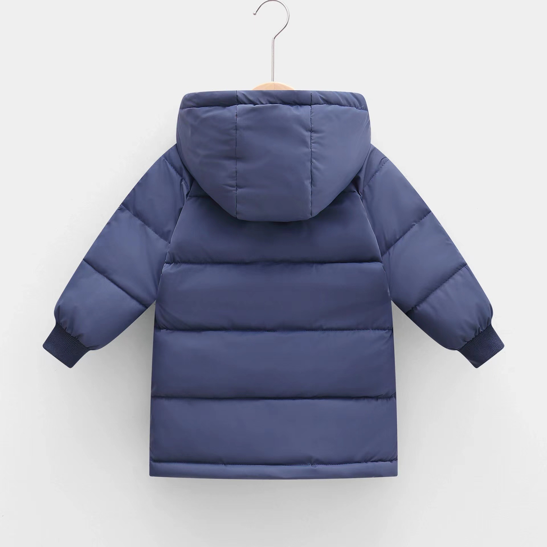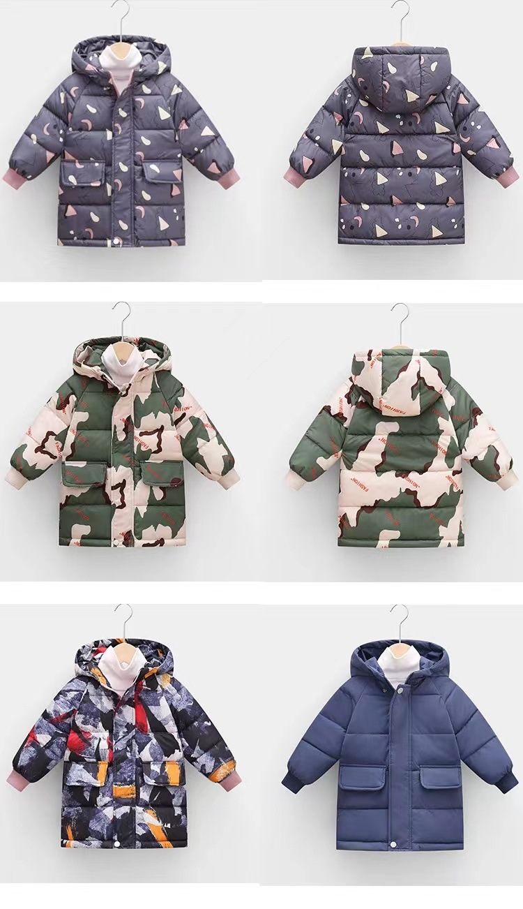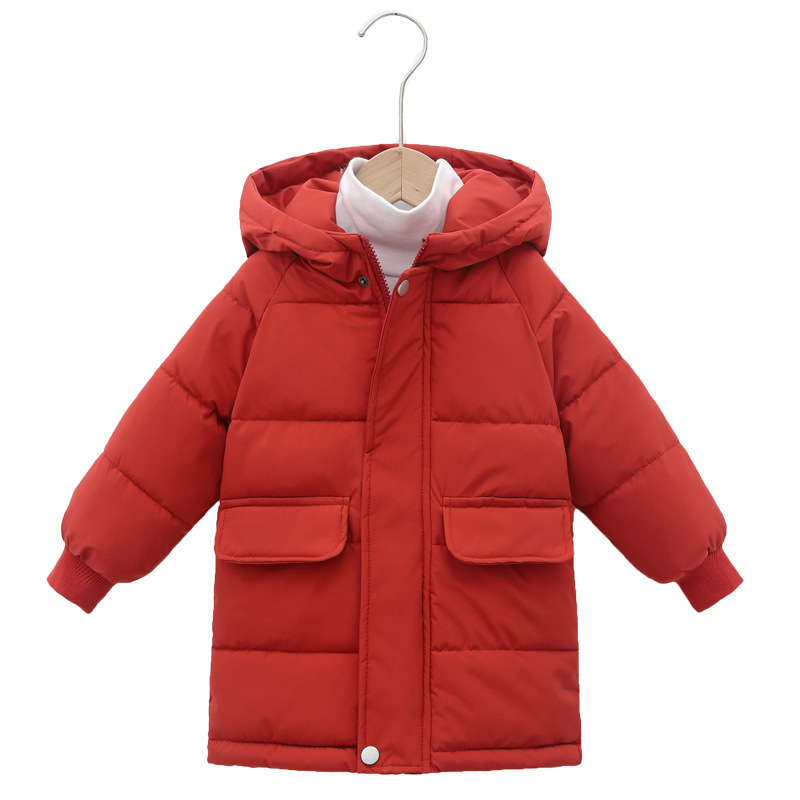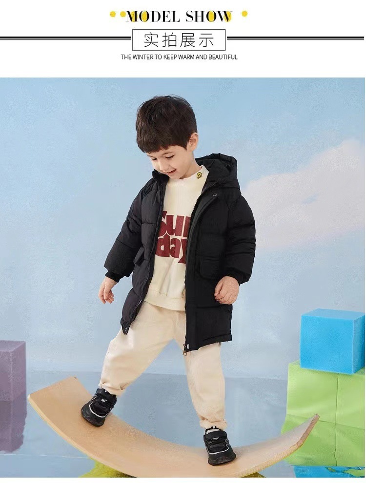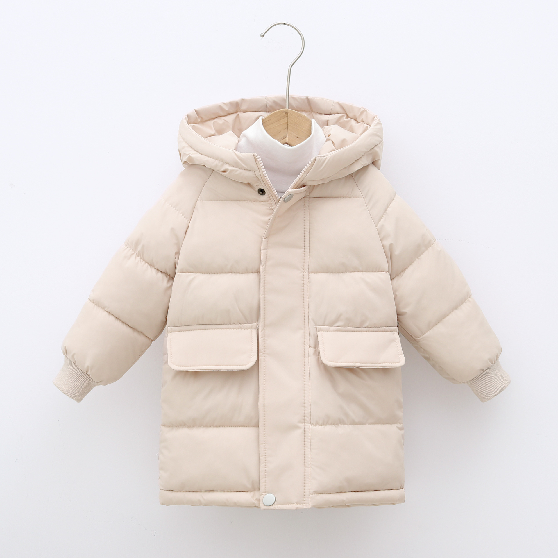 비수기 신작 2025 남아 및 여아용 아동용 중간 길이 면 재킷, 중소형 아동용 두꺼운 후드 면 재킷