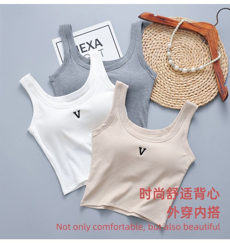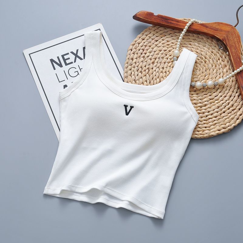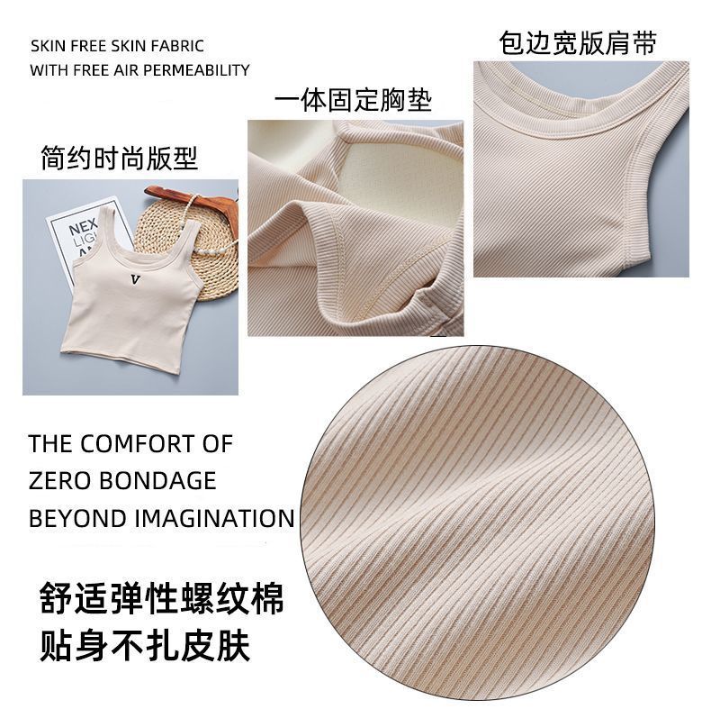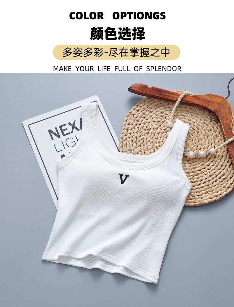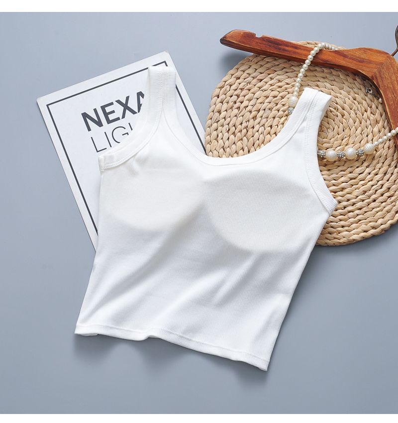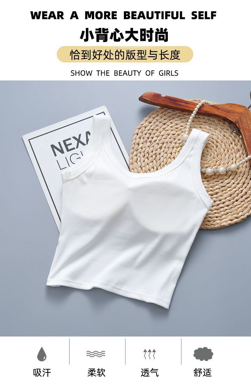 한국 스타일의 간단한 올 매치 슬링 조끼 가슴 패드 원피스 내부 및 외부 착용 슬림 탑 여성 핫 걸 뷰티 백스토어 가기