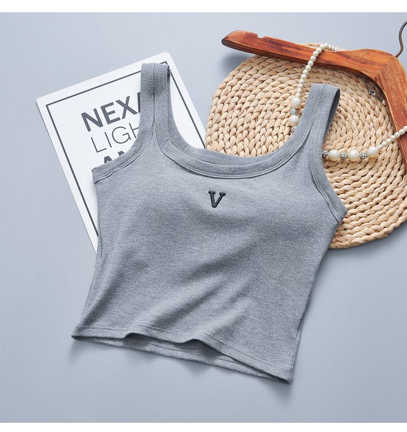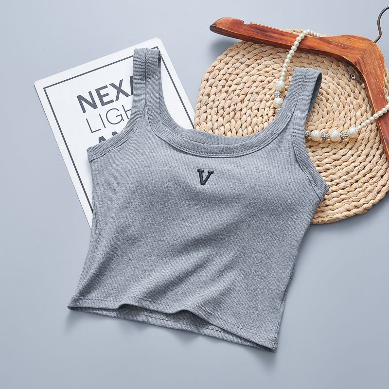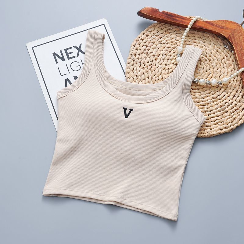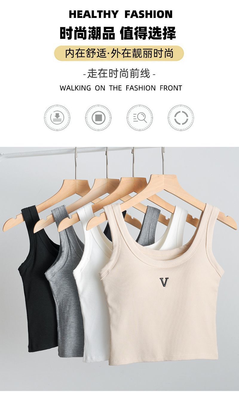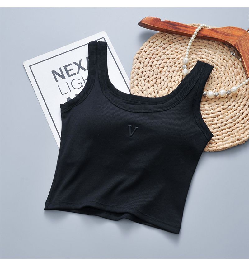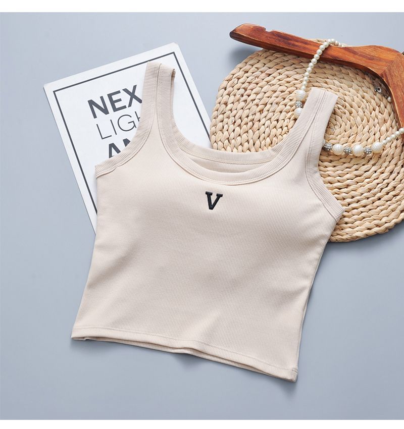 한국 스타일의 간단한 올 매치 슬링 조끼 가슴 패드 원피스 내부 및 외부 착용 슬림 탑 여성 핫 걸 뷰티 백스토어 가기