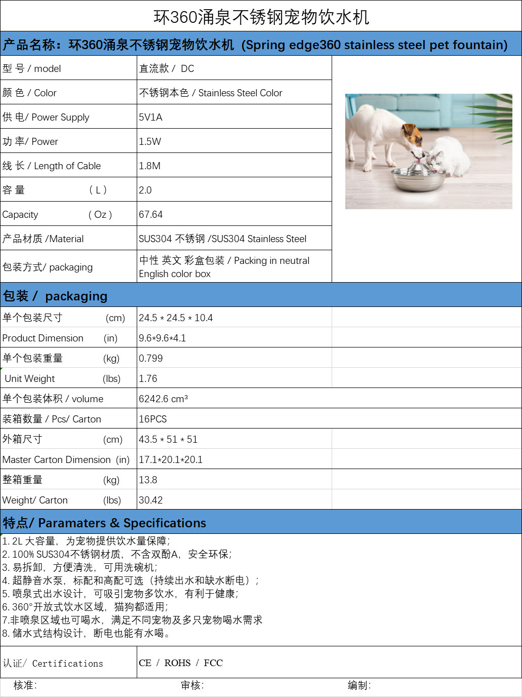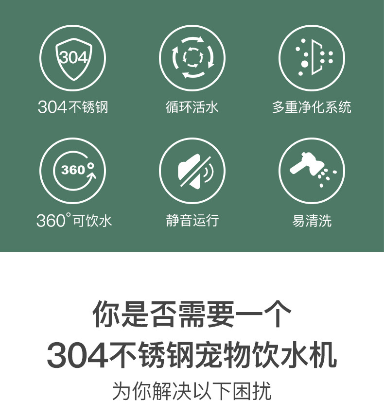 304 스테인리스 애완 동물 지능형 분수 물 디스펜서 고양이 개 오픈 워터 피더 자동 순환 음소거