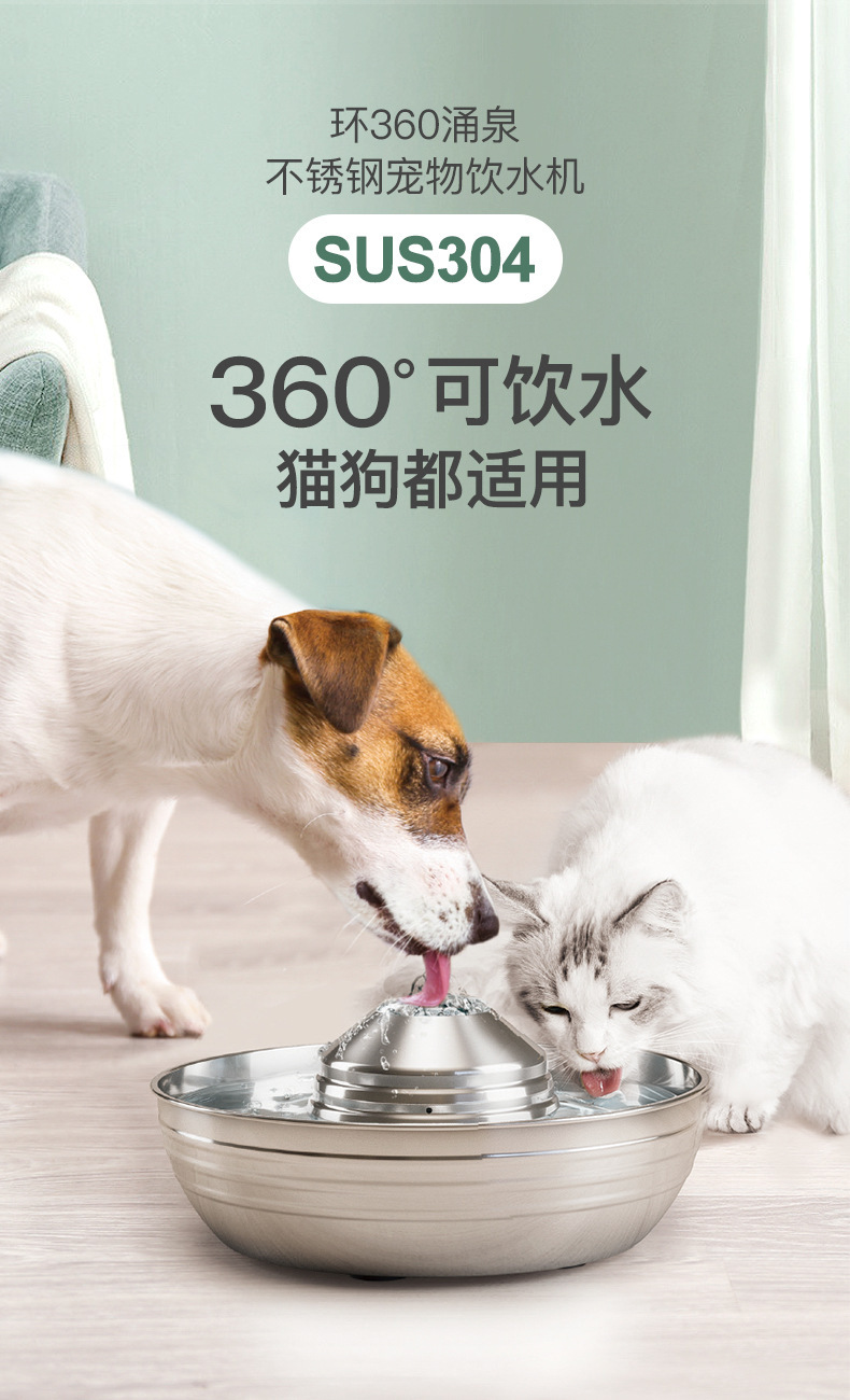 304 스테인리스 애완 동물 지능형 분수 물 디스펜서 고양이 개 오픈 워터 피더 자동 순환 음소거스토어 가기