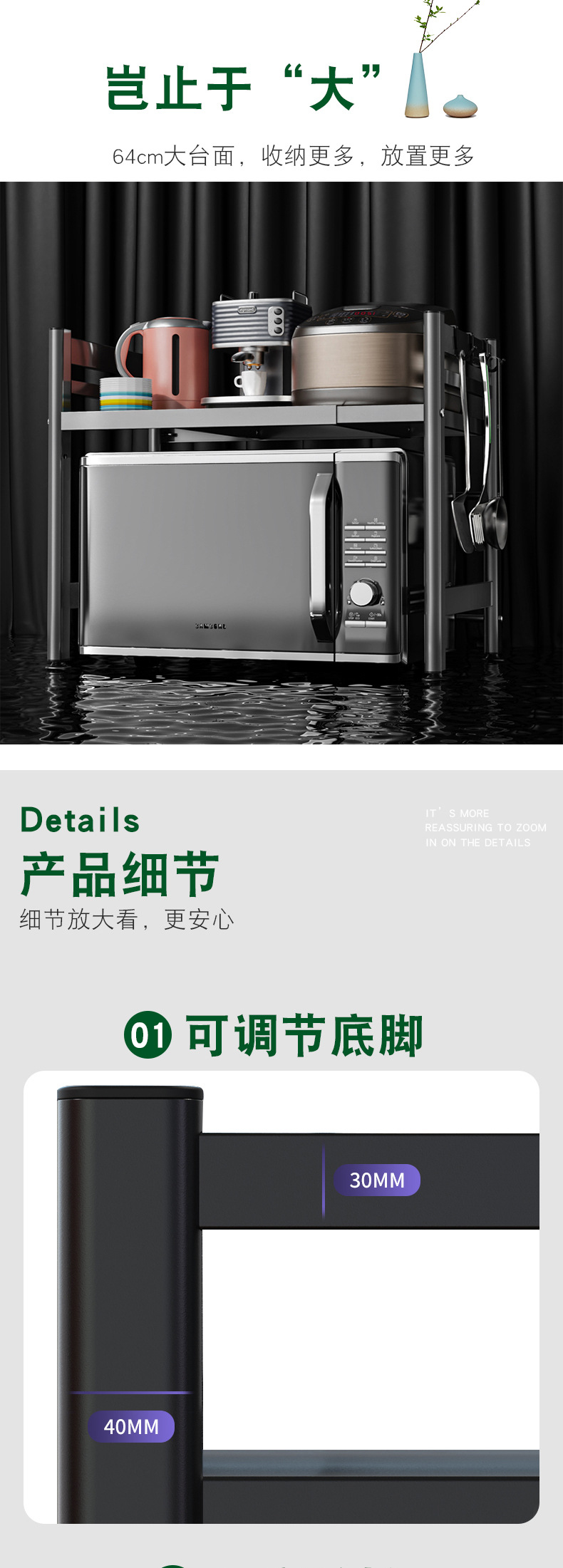 전자 레인지 랙 개폐식 오븐 수조 보관 랙 가정용 바닥 스탠딩 다층 주방 랙