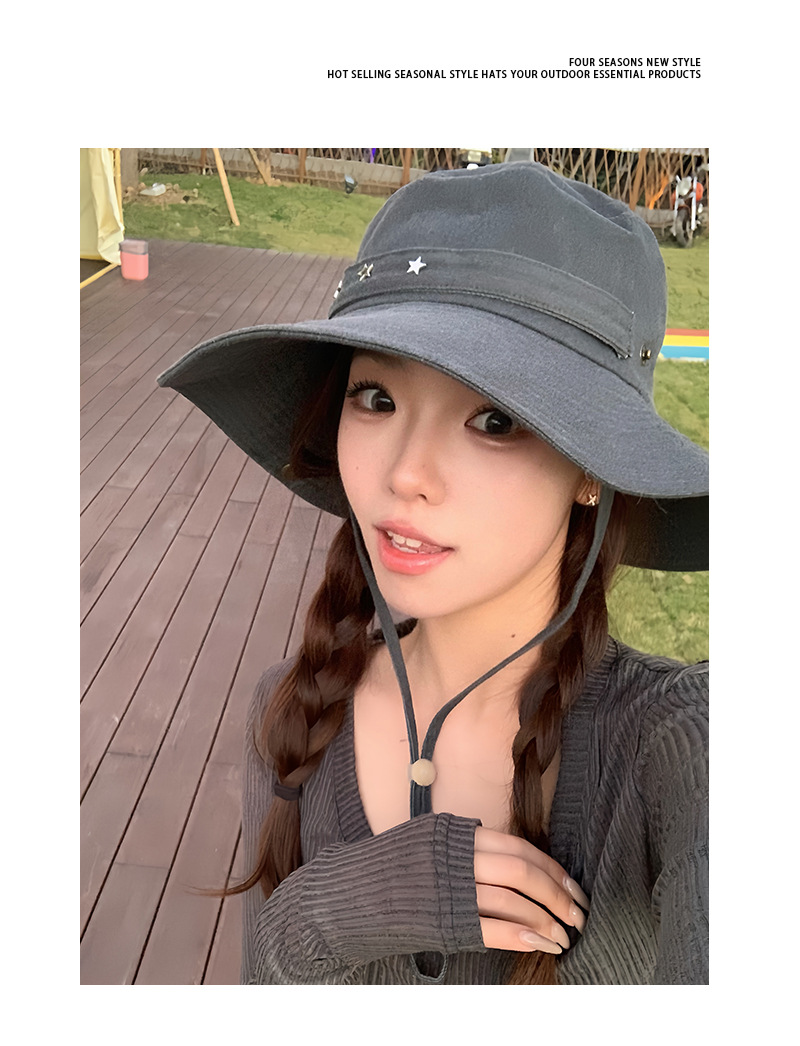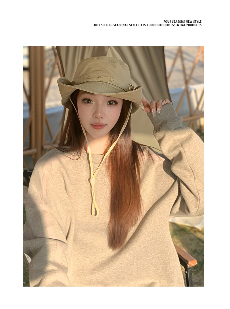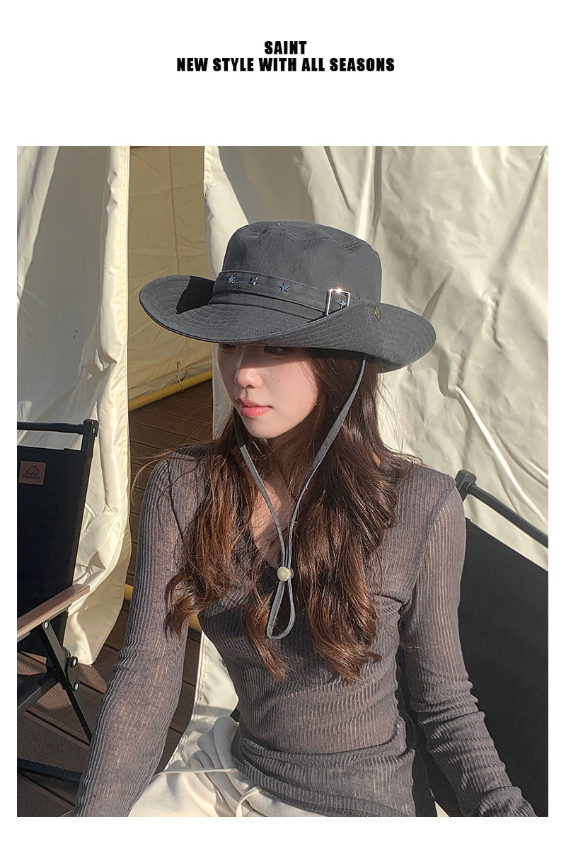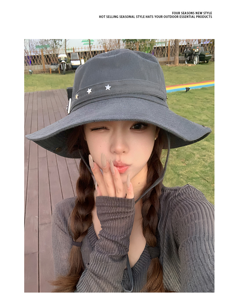 아이언 버클 다섯개 별 남자와 여자의 일본 큰 테두리 태양 모자 여름 통기성 태양 모자 야외 낚시 캠핑 등반 모자