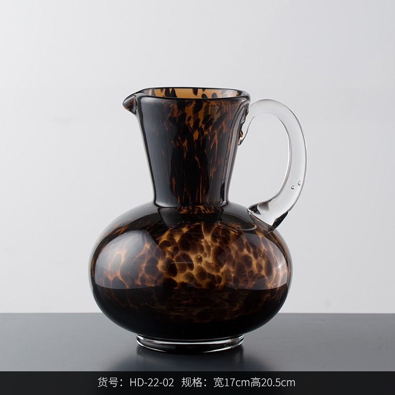 복시 홈 빈티지 앰버 레오파드 무늬 유리 꽃병 홈 디자인 부드러운 장식 중반 고대 꽃 도자기