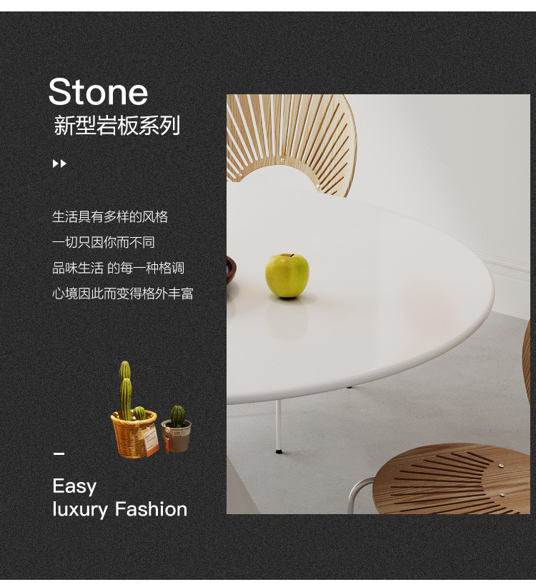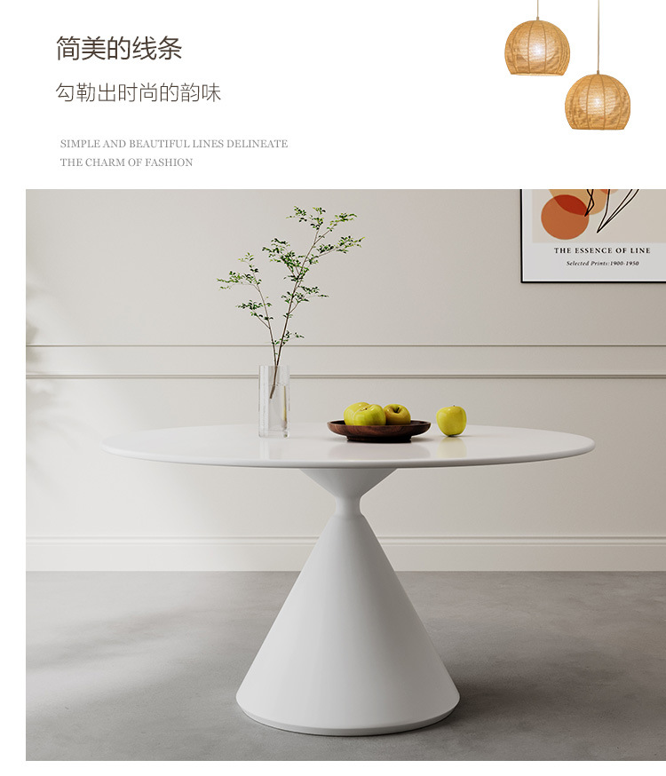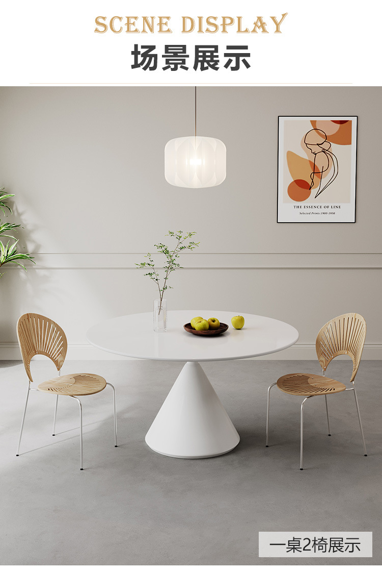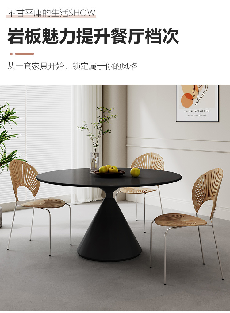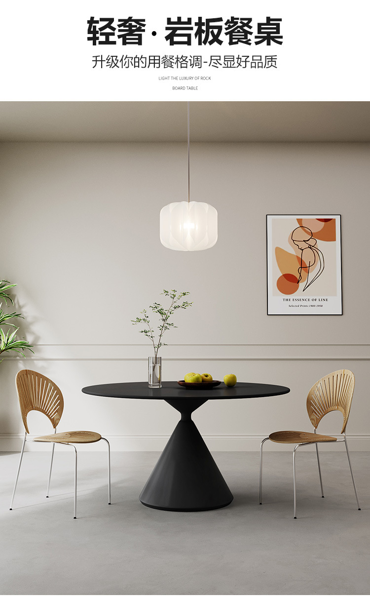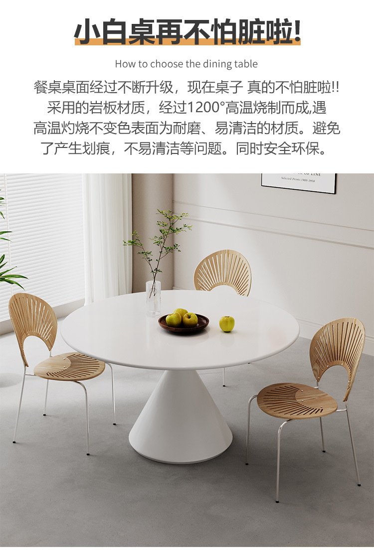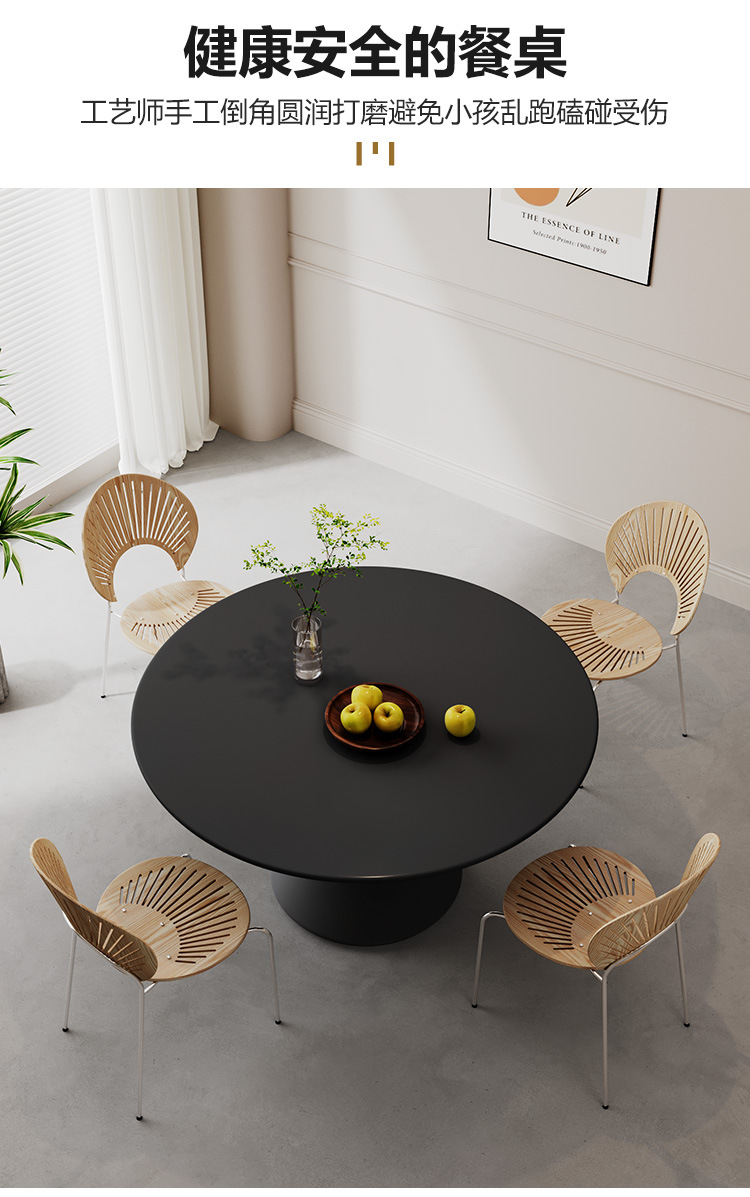 가정용 간단한 순수한 흰색 현대 크림 쌀 테이블 순수한 검은 매트 스타일 둥근 식탁과 의자 조합 바위 접시 작은 아파트스토어 가기