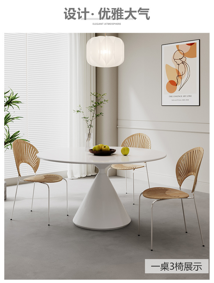 가정용 간단한 순수한 흰색 현대 크림 쌀 테이블 순수한 검은 매트 스타일 둥근 식탁과 의자 조합 바위 접시 작은 아파트