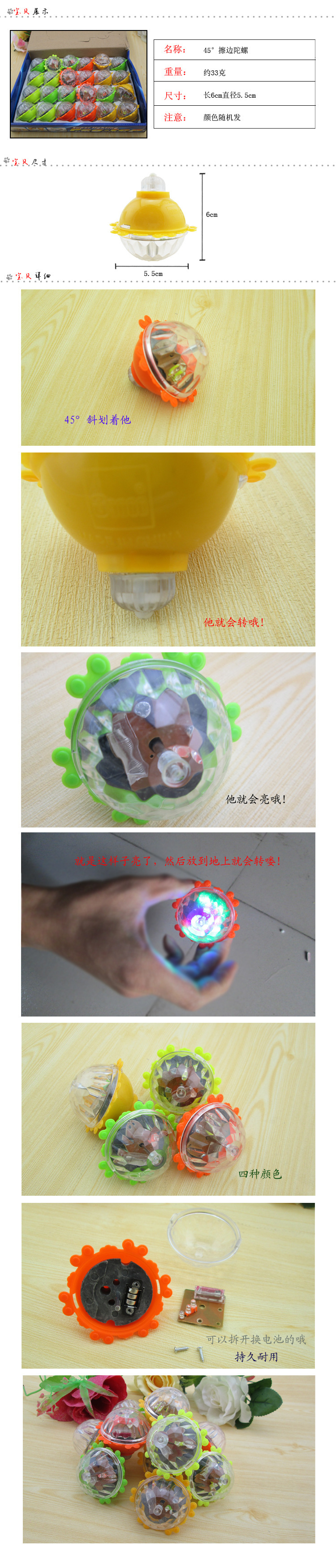 마찰 발광 자이로 화려한 플래시 관성 회전 자이로 어린이 장난감 마구간 공급 뜨거운 판매 도매