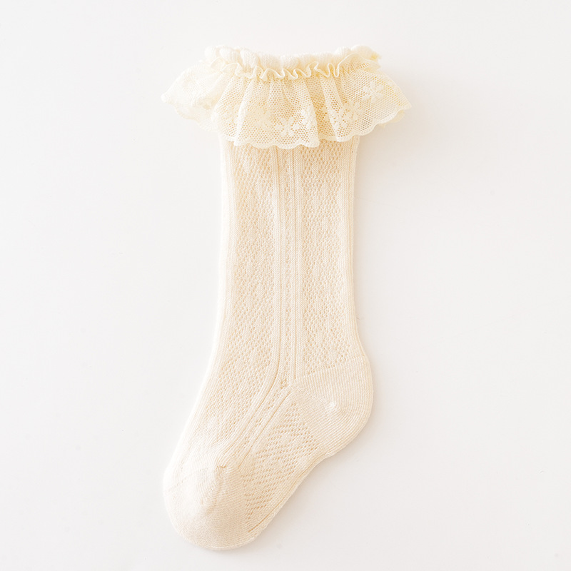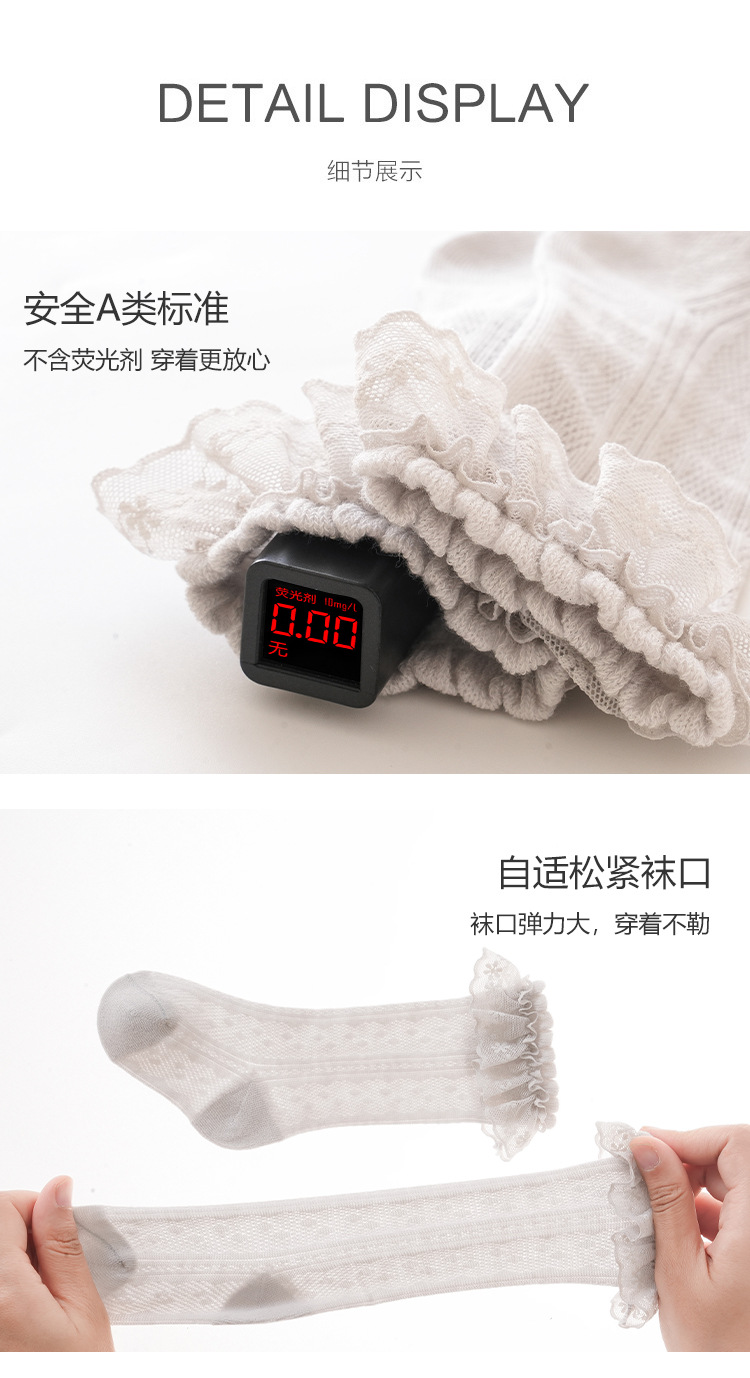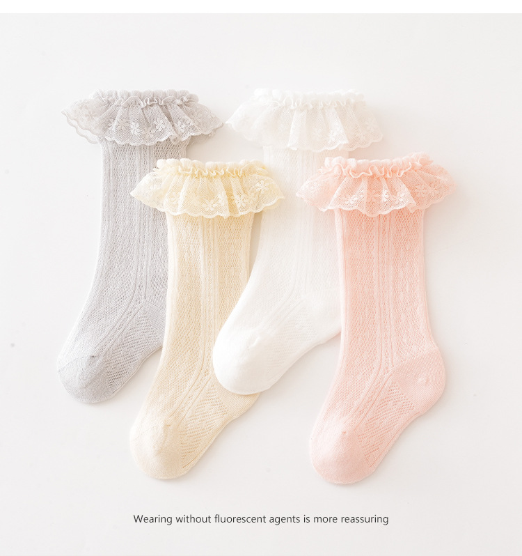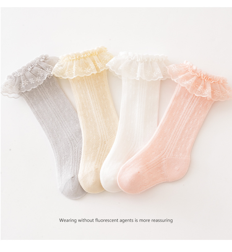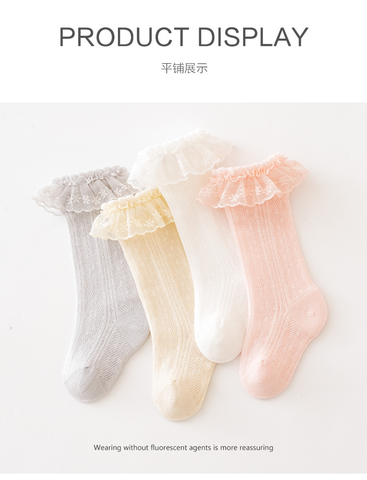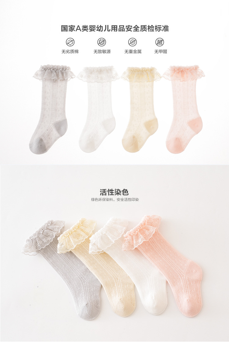 봄과 여름 얇은 어린이 스타킹 통기성 메쉬 레이스 공주 아기 소녀 코튼 뼈없는 아기 종아리 양말