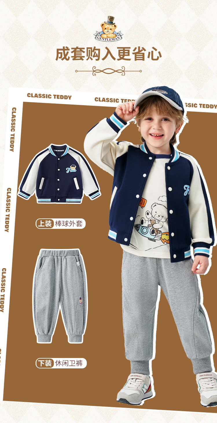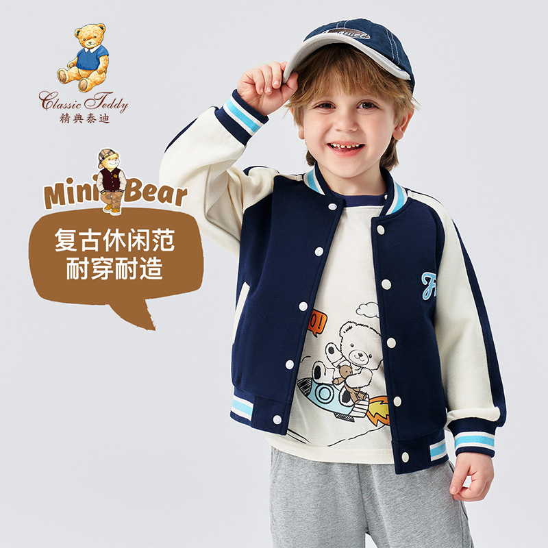 클래식 테디 아동 자켓, 봄 남아 야구 유니폼, 아동 자켓, 남아용 다용도 상의, 캐주얼하고 패셔너블한스토어 가기