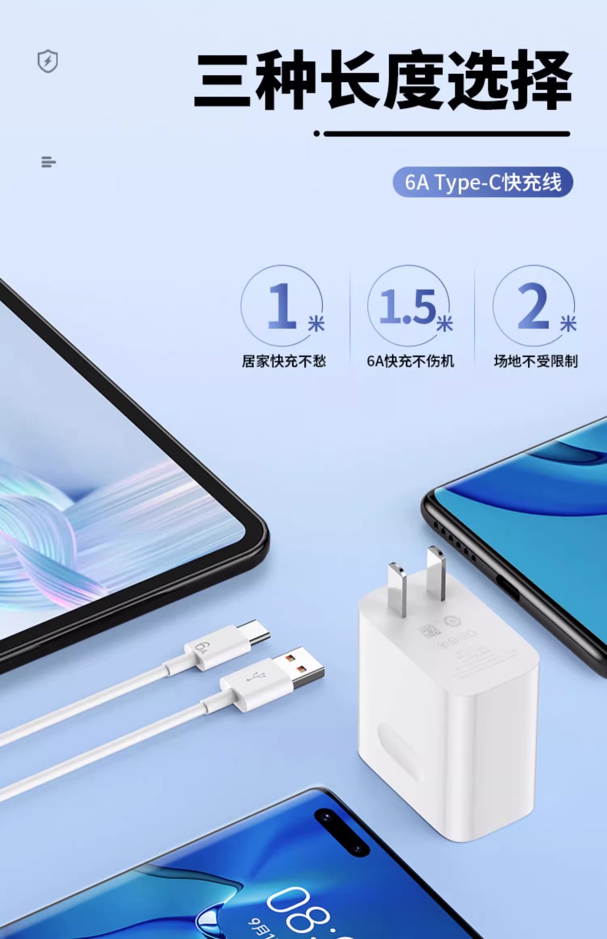 • 66w 빠른 충전 헤드 + 1 m 6A 빠른 충전 케이블
