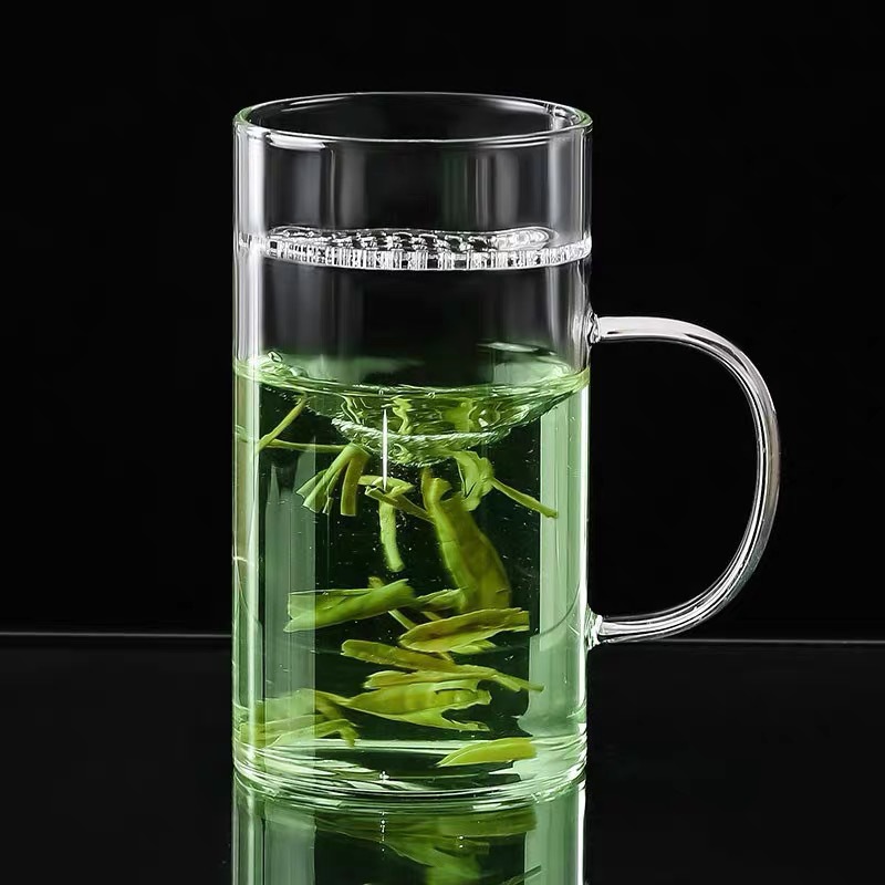 초승달 컵 붕규산 유리 컵 가정용 차 물 분리 필터 사무실 손잡이 뚜껑 하이 엔드 티 컵