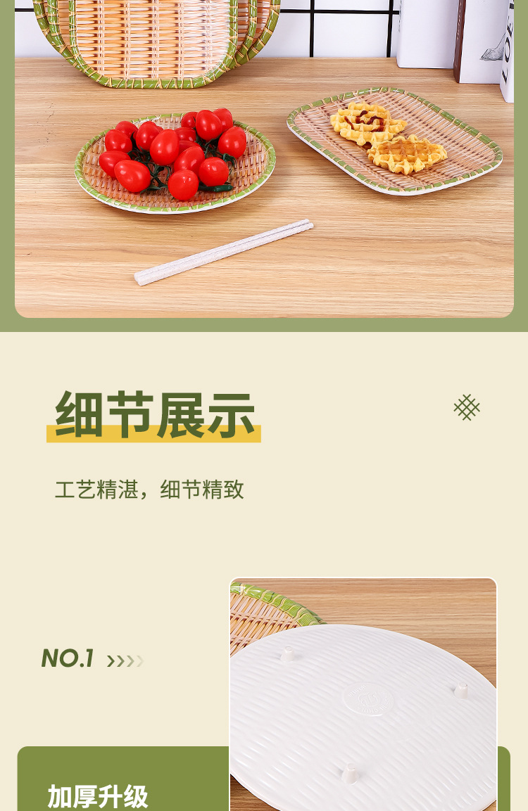 대나무 짠 접시 상업 멜라민 도자기 같은 식기 냄비 레스토랑 바베큐 특별 요리 플라스틱 스낵 플레이트스토어 가기