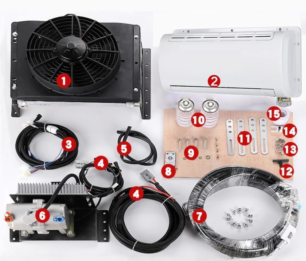 자동차 숨겨진 에어컨 전기 냉동 세트 밴 바닥 수정 응축기 증발기 압축기