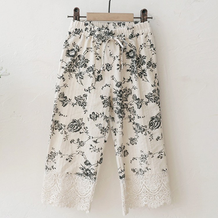 2024 봄 딸기 샌디 한국 여자 어린이 레트로 컬러 레이스 코튼 올매치 캐주얼 바지 사전 판매스토어 가기