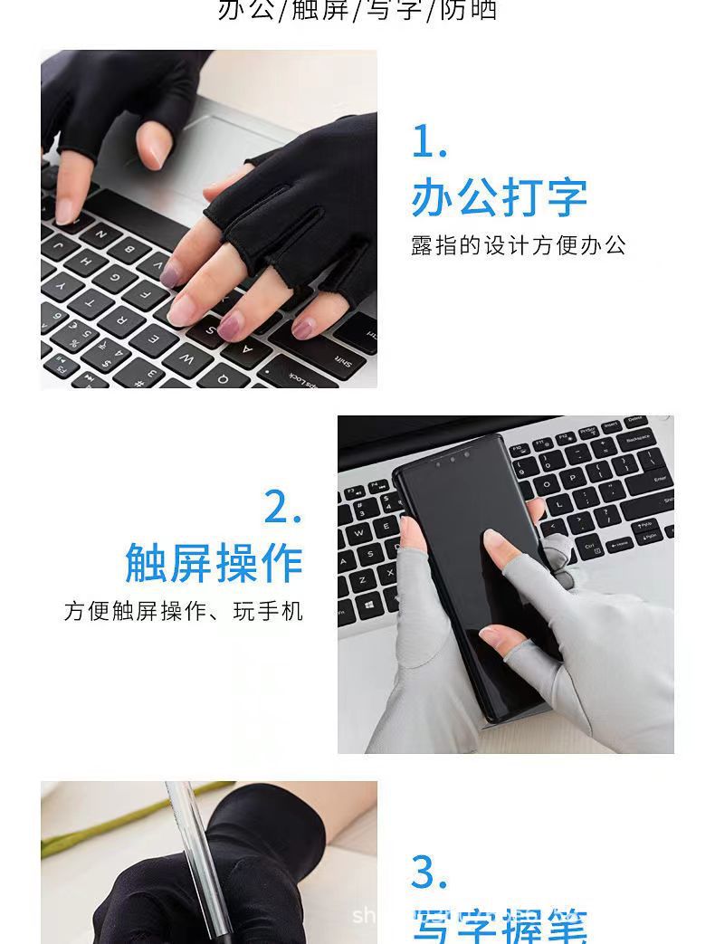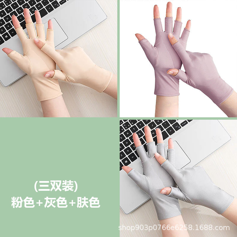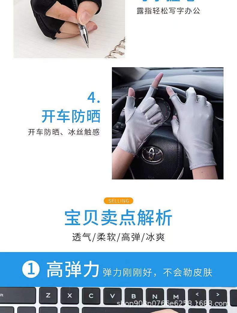 아이스 실크 얇은 장갑 선스크린 여름 이슬 두 손가락 장갑 봄과 가을 차 따기 사이클링 스포츠 피트니스 빠른 건조 여성스토어 가기