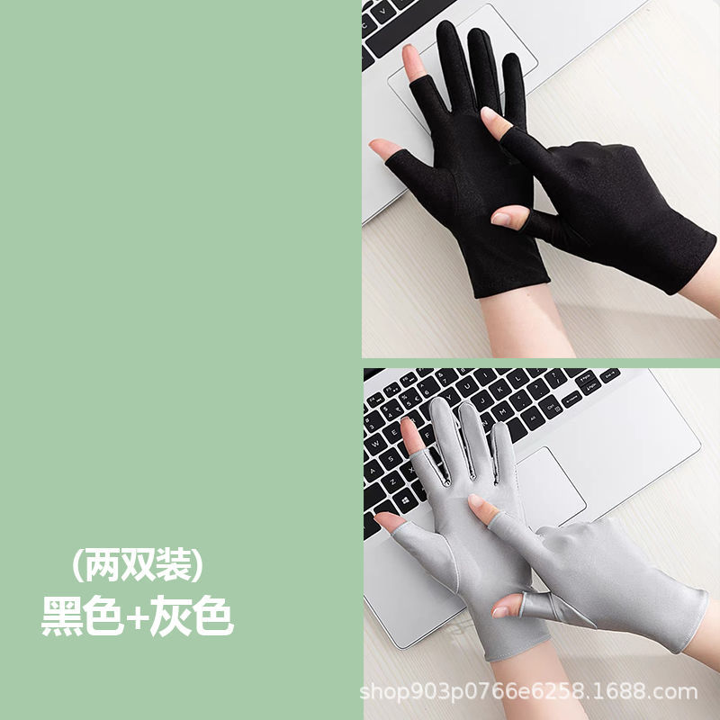 아이스 실크 얇은 장갑 선스크린 여름 이슬 두 손가락 장갑 봄과 가을 차 따기 사이클링 스포츠 피트니스 빠른 건조 여성
