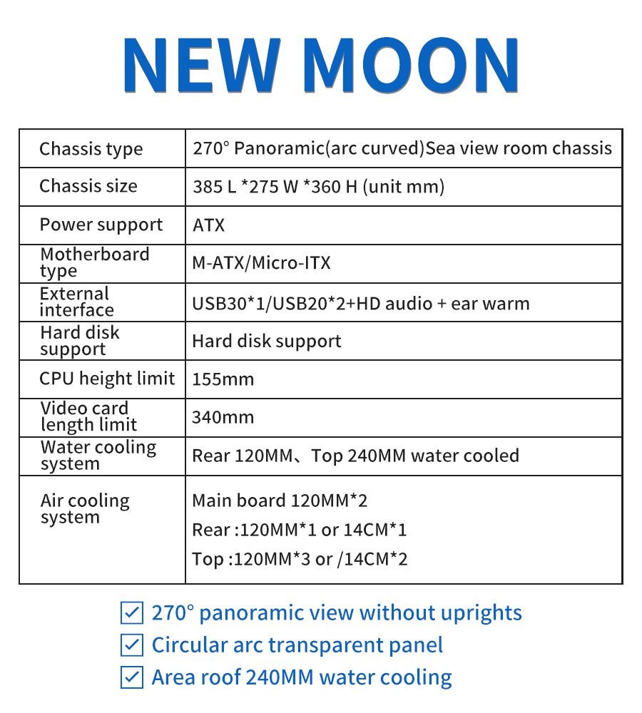 新月5卡插槽扩展钢化玻璃电竞游戏机箱M-ATX全景海景房机箱