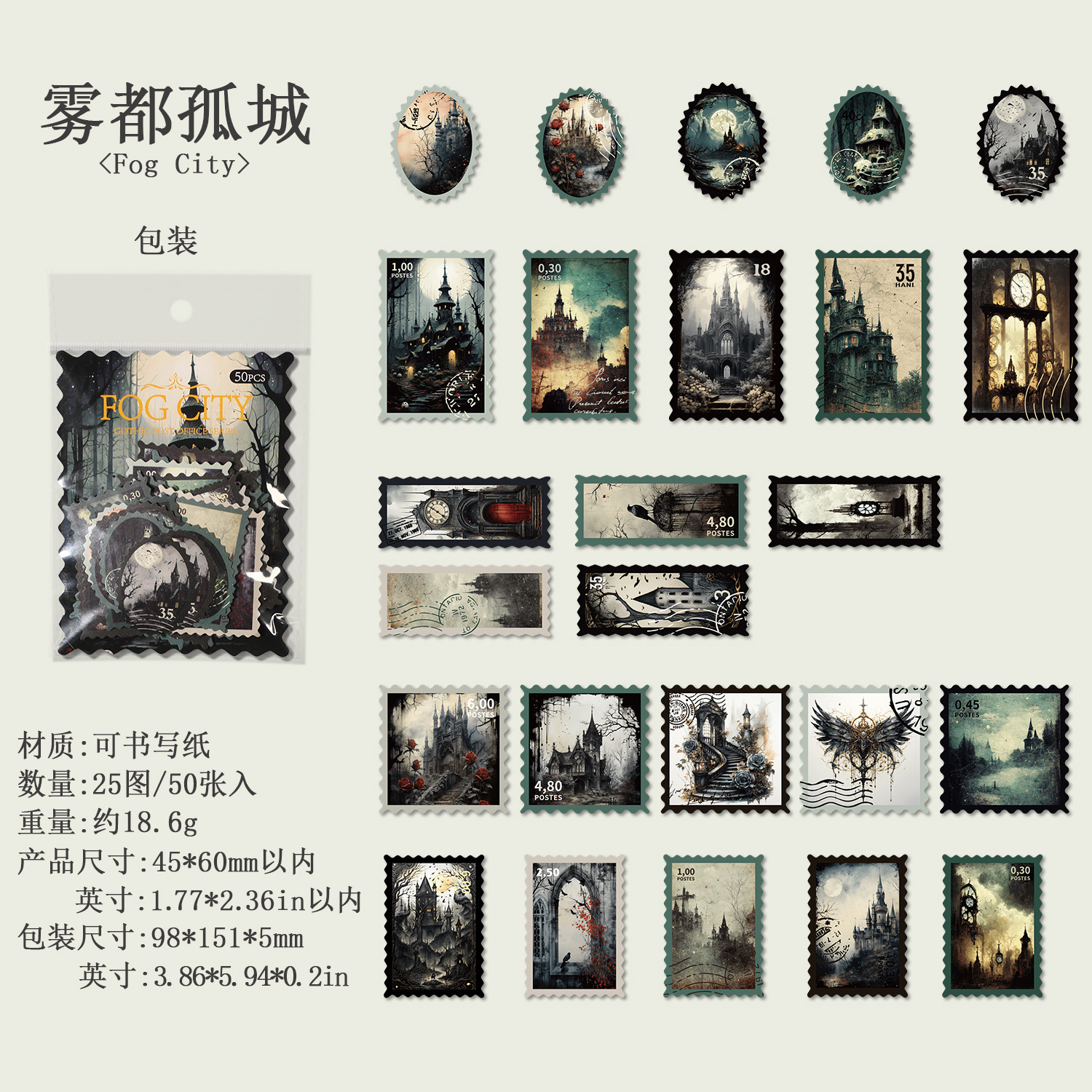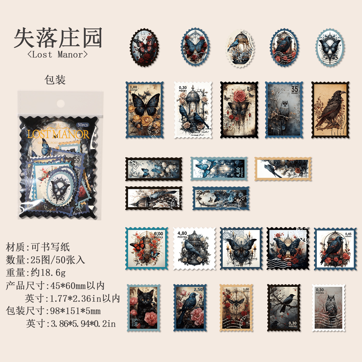 국경 간 고대 숲 고딕 우체국 시리즈 미국 복고풍 고딕 스타일 저널 스티커 저널 콜라주 자료스토어 가기