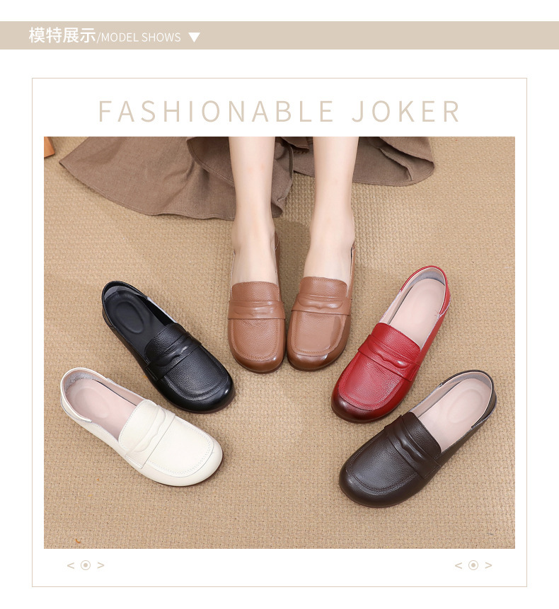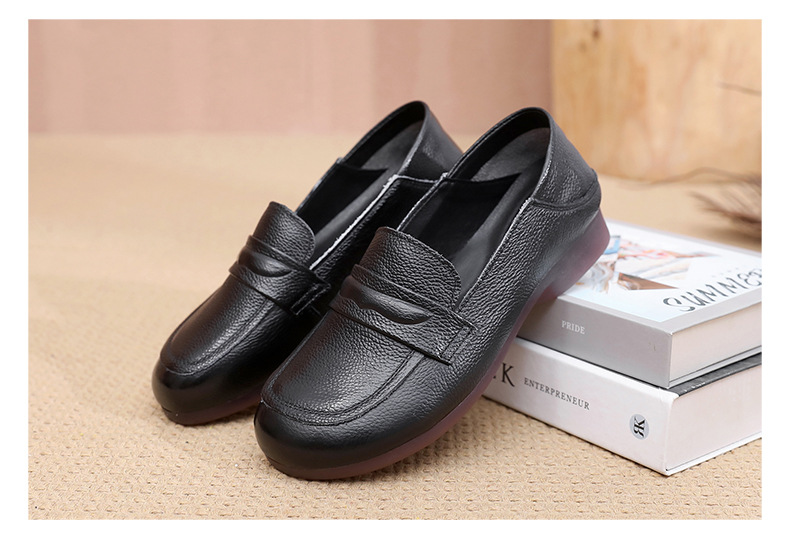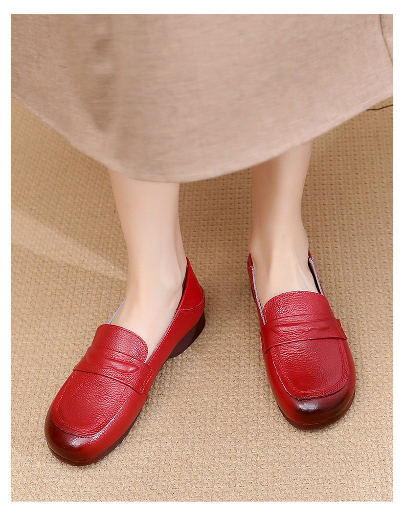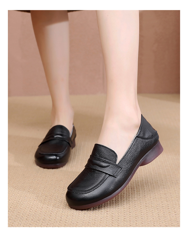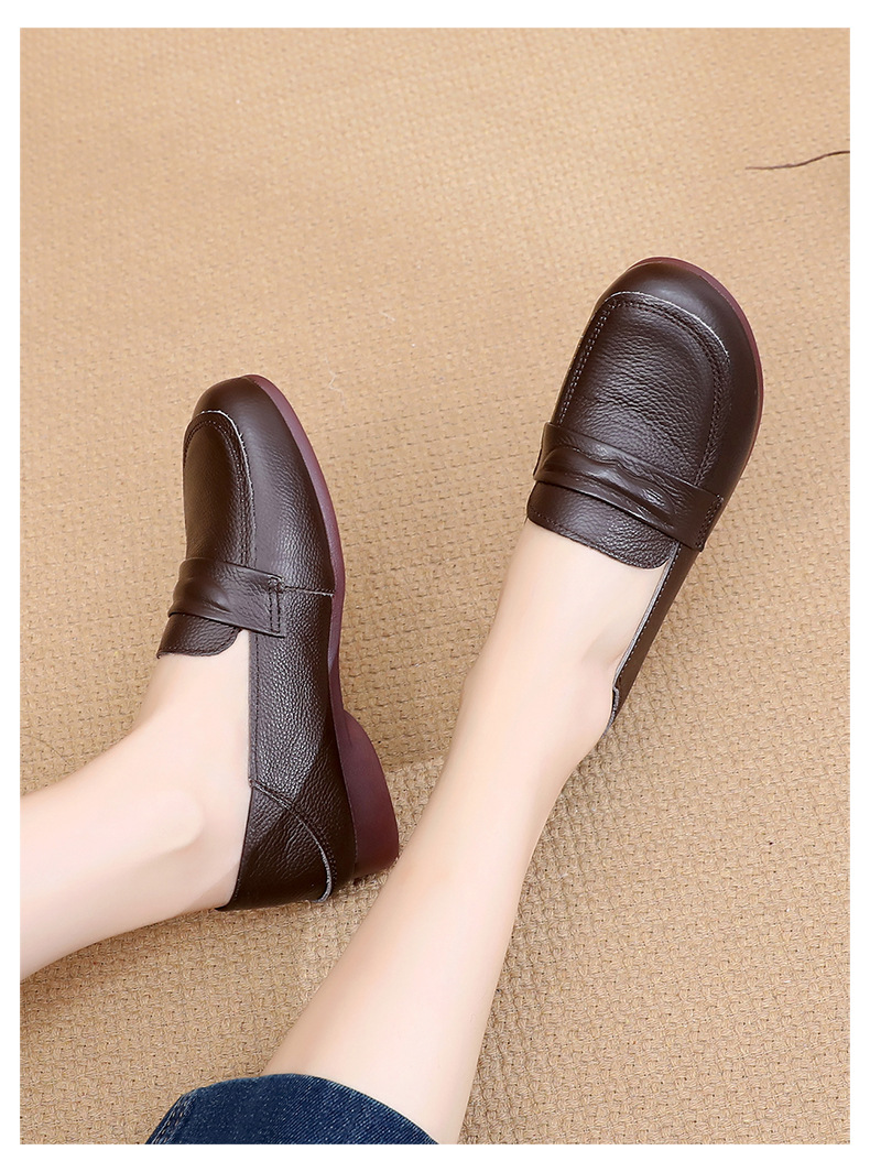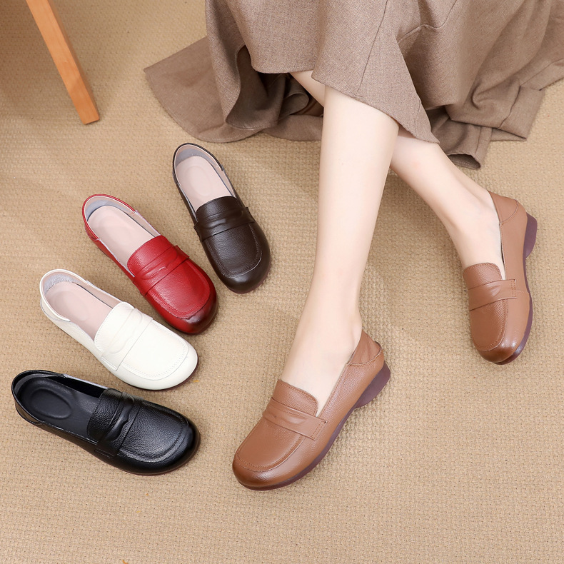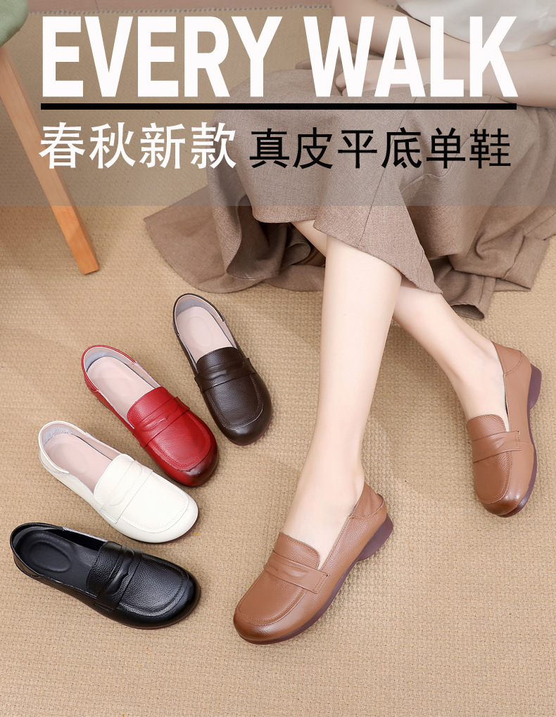 봄과 가을 새로운 정품 가죽 부드러운 소가죽 플랫 엄마 신발 싱글 신발 편안한 올 매치 캐주얼 여성 신발