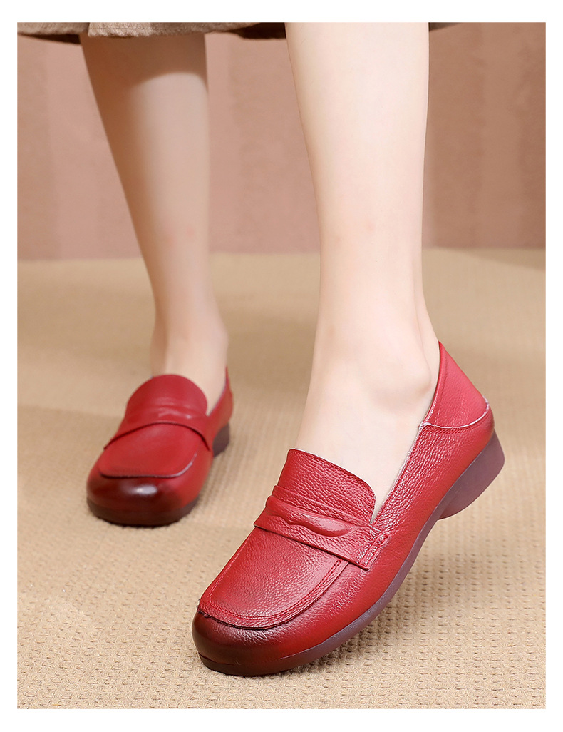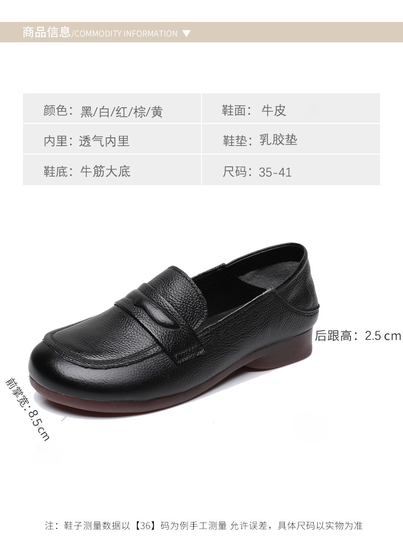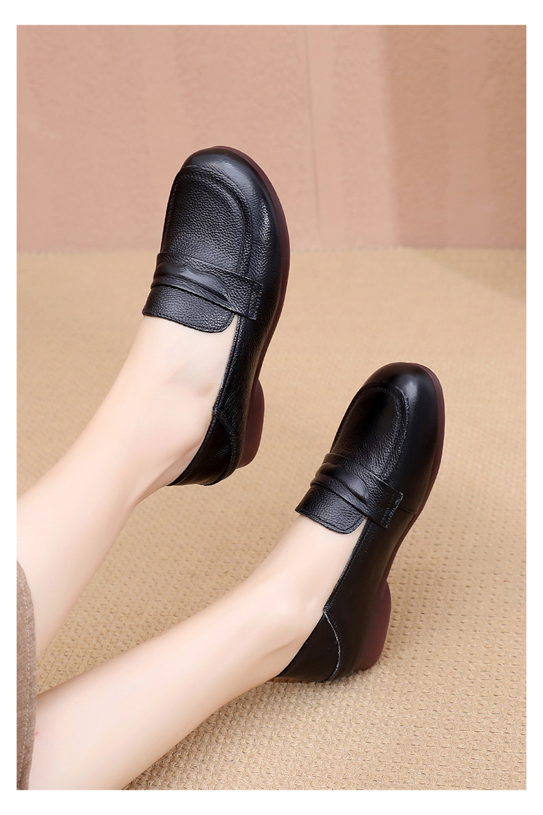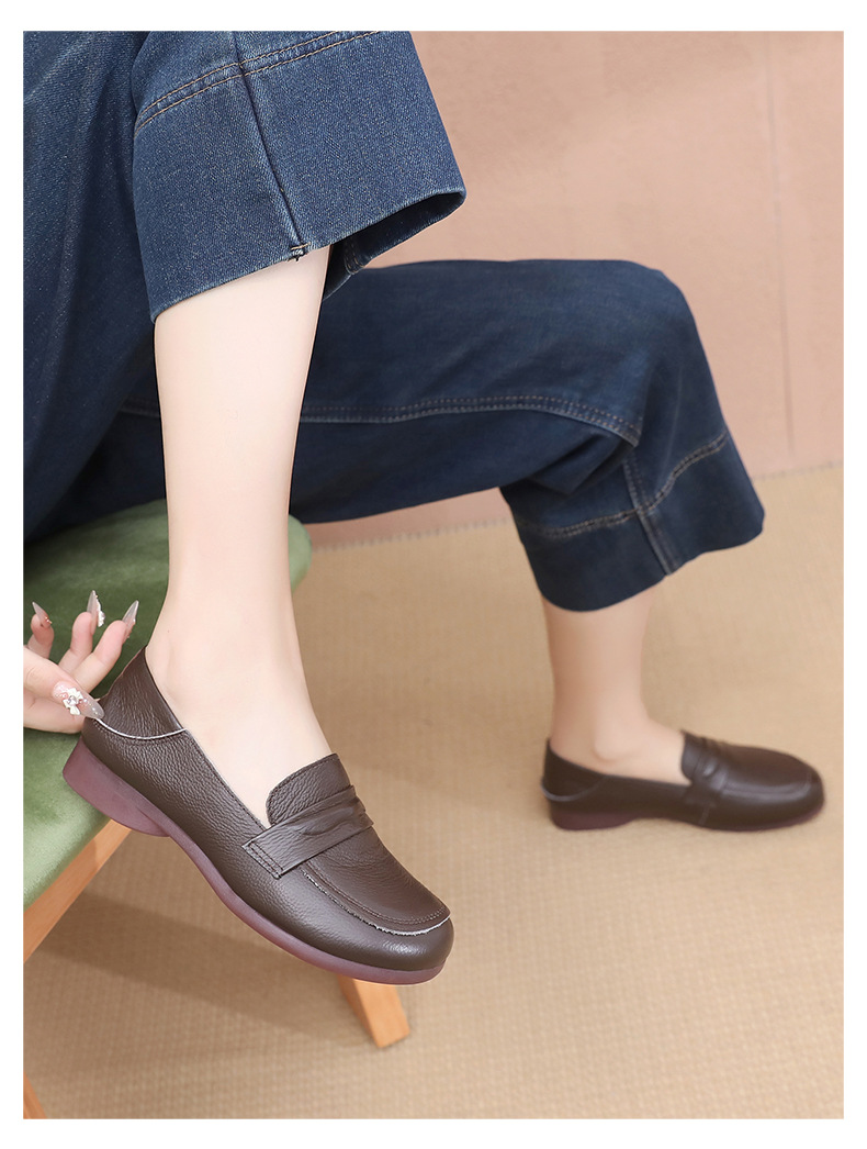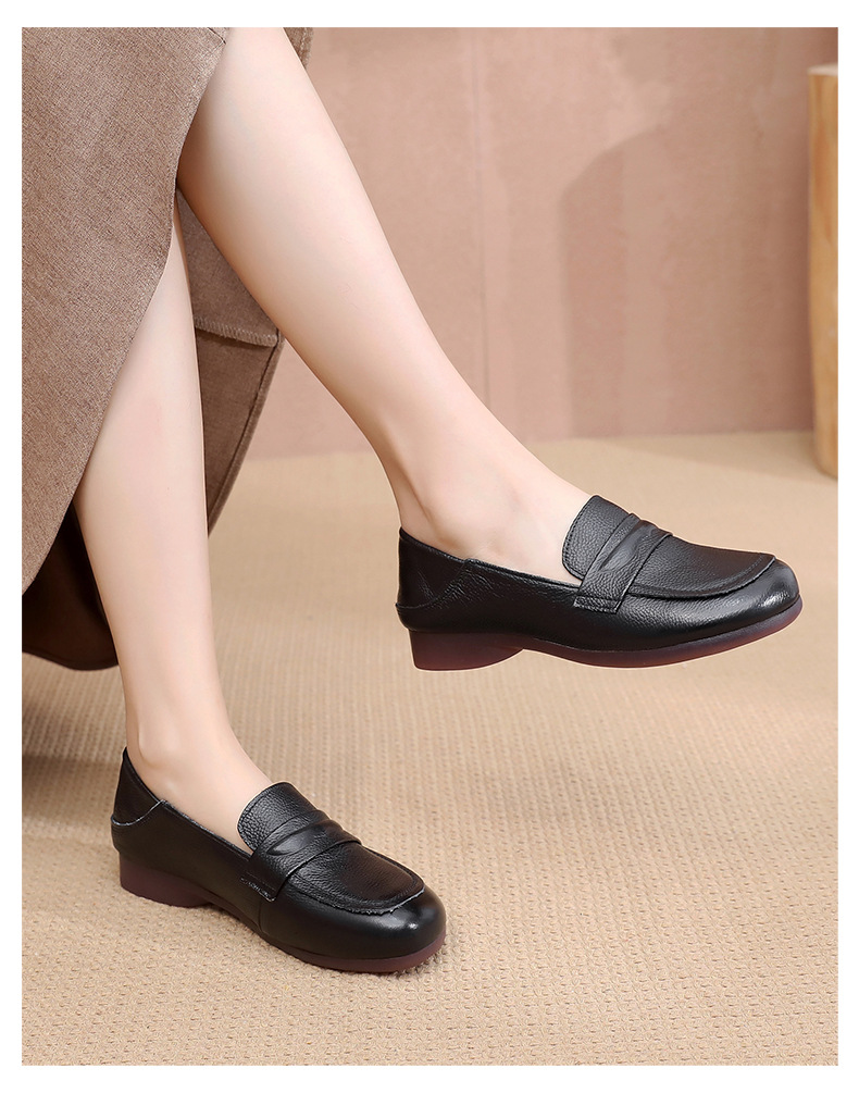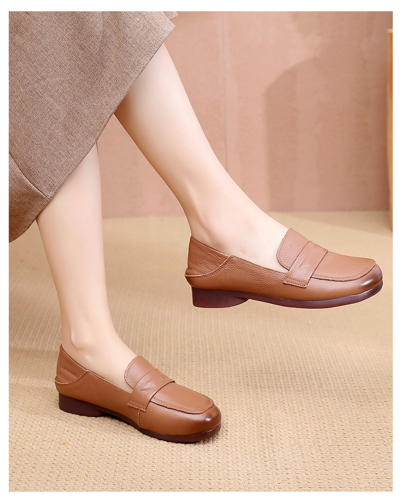 봄과 가을 새로운 정품 가죽 부드러운 소가죽 플랫 엄마 신발 싱글 신발 편안한 올 매치 캐주얼 여성 신발