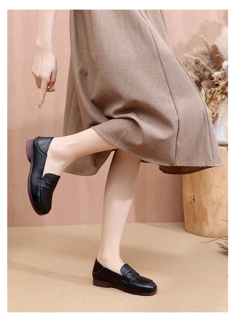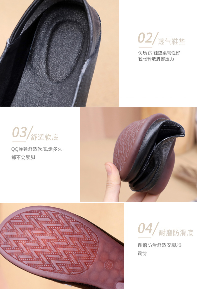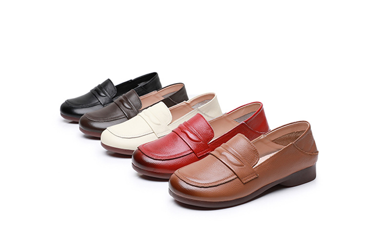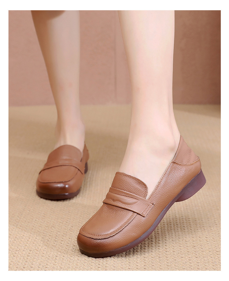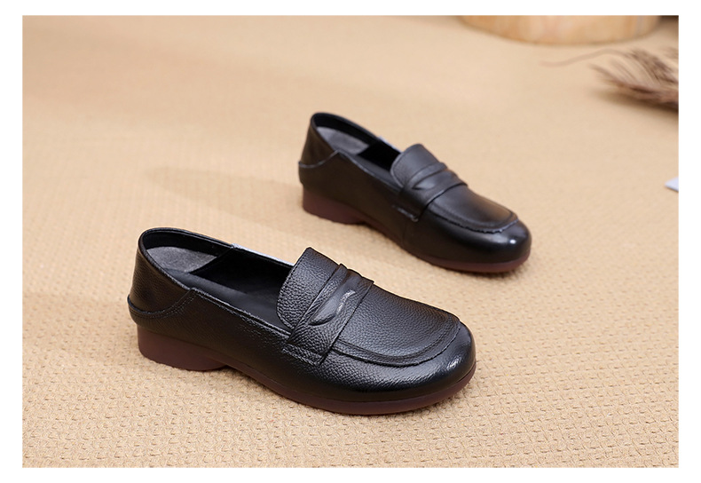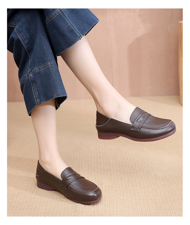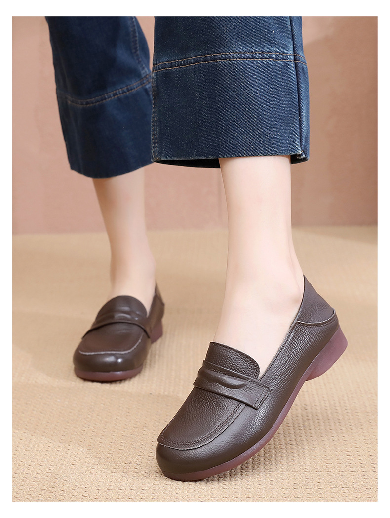 봄과 가을 새로운 정품 가죽 부드러운 소가죽 플랫 엄마 신발 싱글 신발 편안한 올 매치 캐주얼 여성 신발