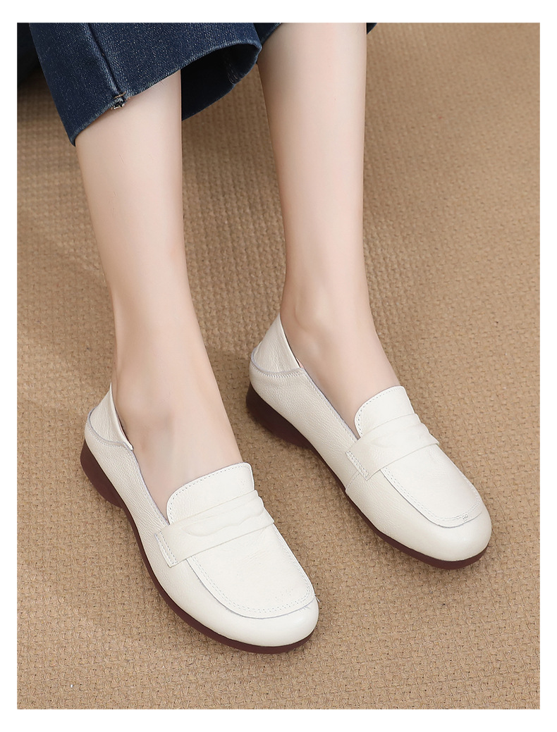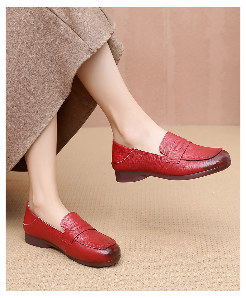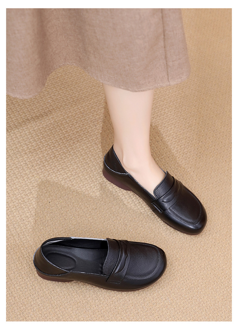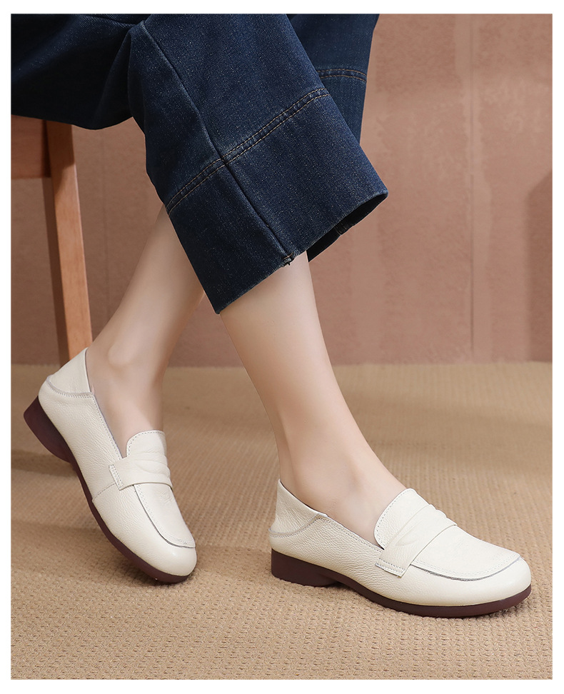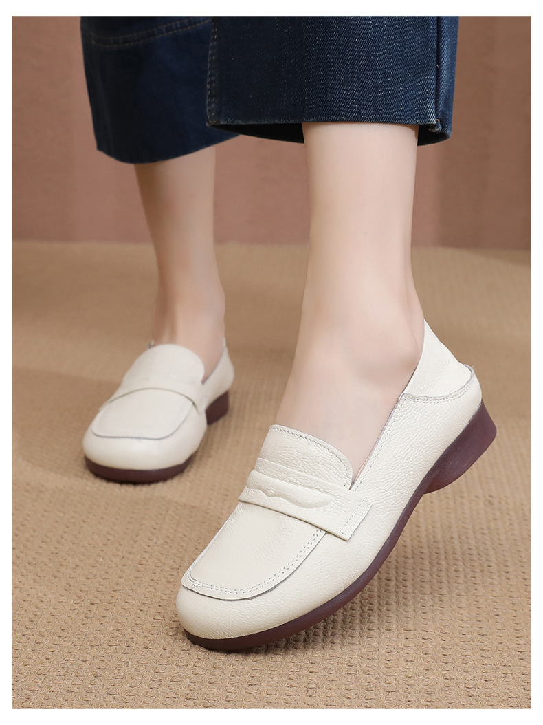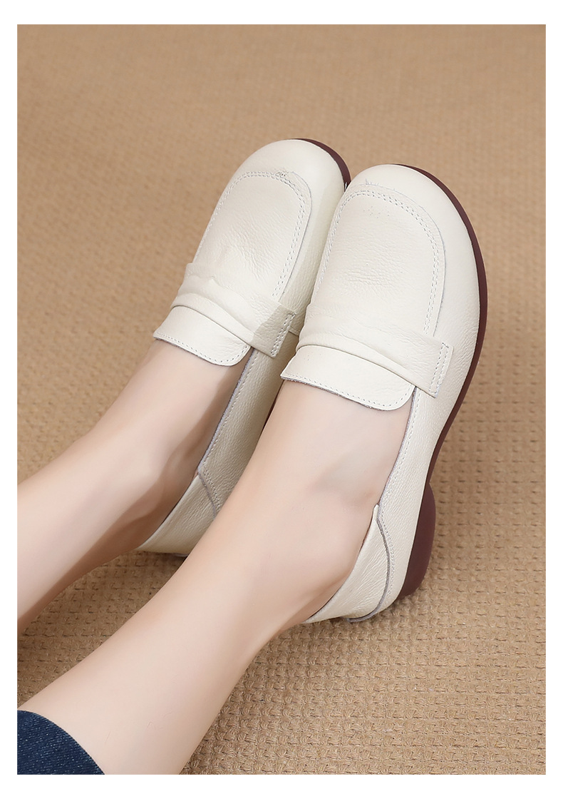 봄과 가을 새로운 정품 가죽 부드러운 소가죽 플랫 엄마 신발 싱글 신발 편안한 올 매치 캐주얼 여성 신발