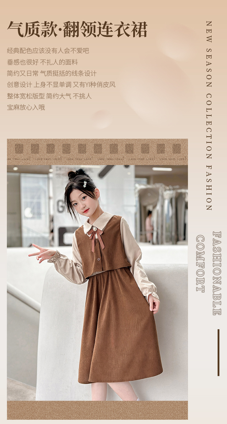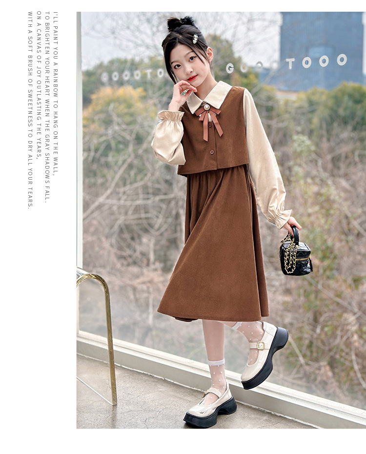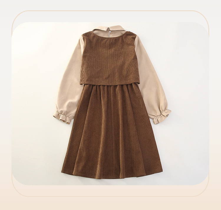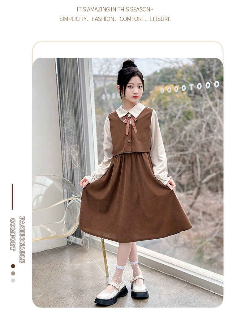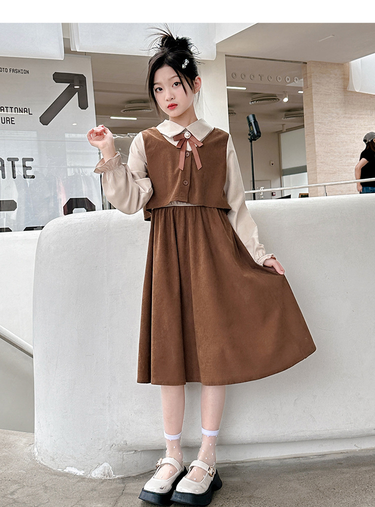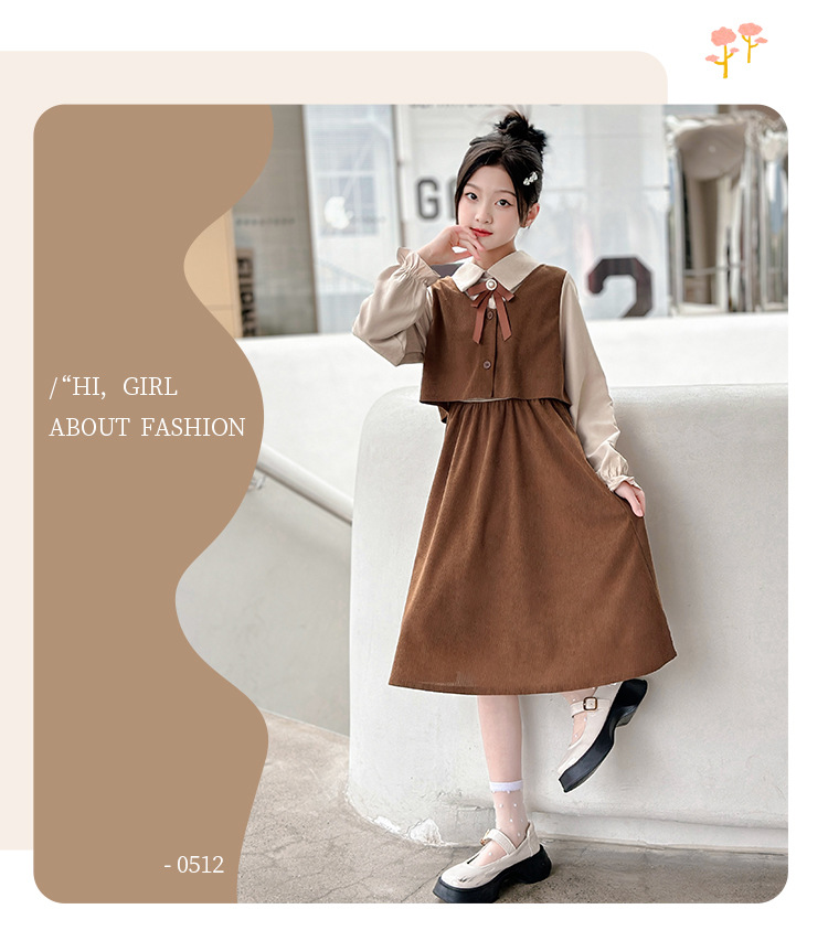 소녀 원피스 봄과 가을 2024 새로운 서양식 어린이 가짜 투피스 원피스 소녀 봄 긴팔 원피스스토어 가기