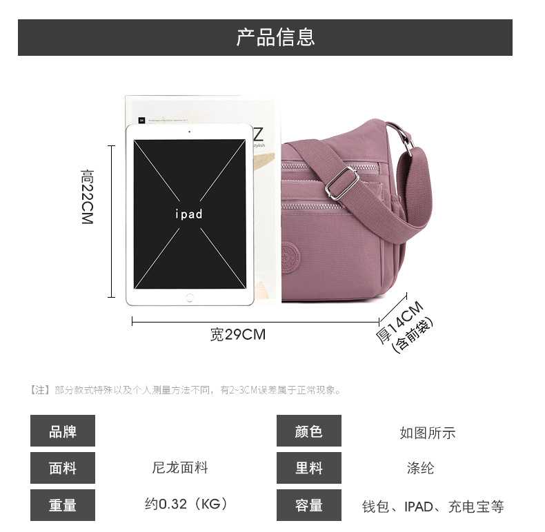 새로운 캐주얼 여행 크로스백 중년 다층 수납 토트백 가로 나일론 천 숄더백 통근 가방