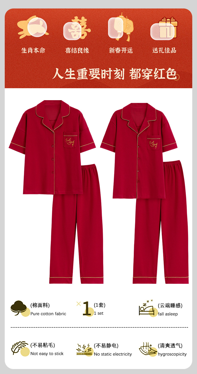 국경 간 도매 커플 잠옷 여름면 짧은 소매 결혼식 축제 출생 년 붉은 면화 세트스토어 가기