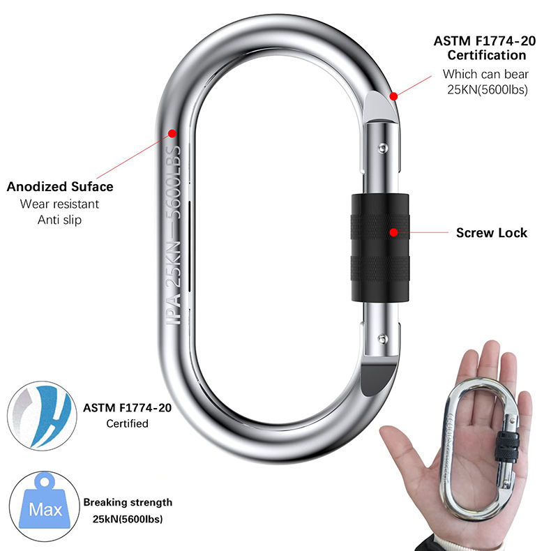 Q & C 공중 요가 해먹 O 형 강철 자물쇠 야외 암벽 등반 와이어 버클 연결 링 버클 베어링 25KN 공급